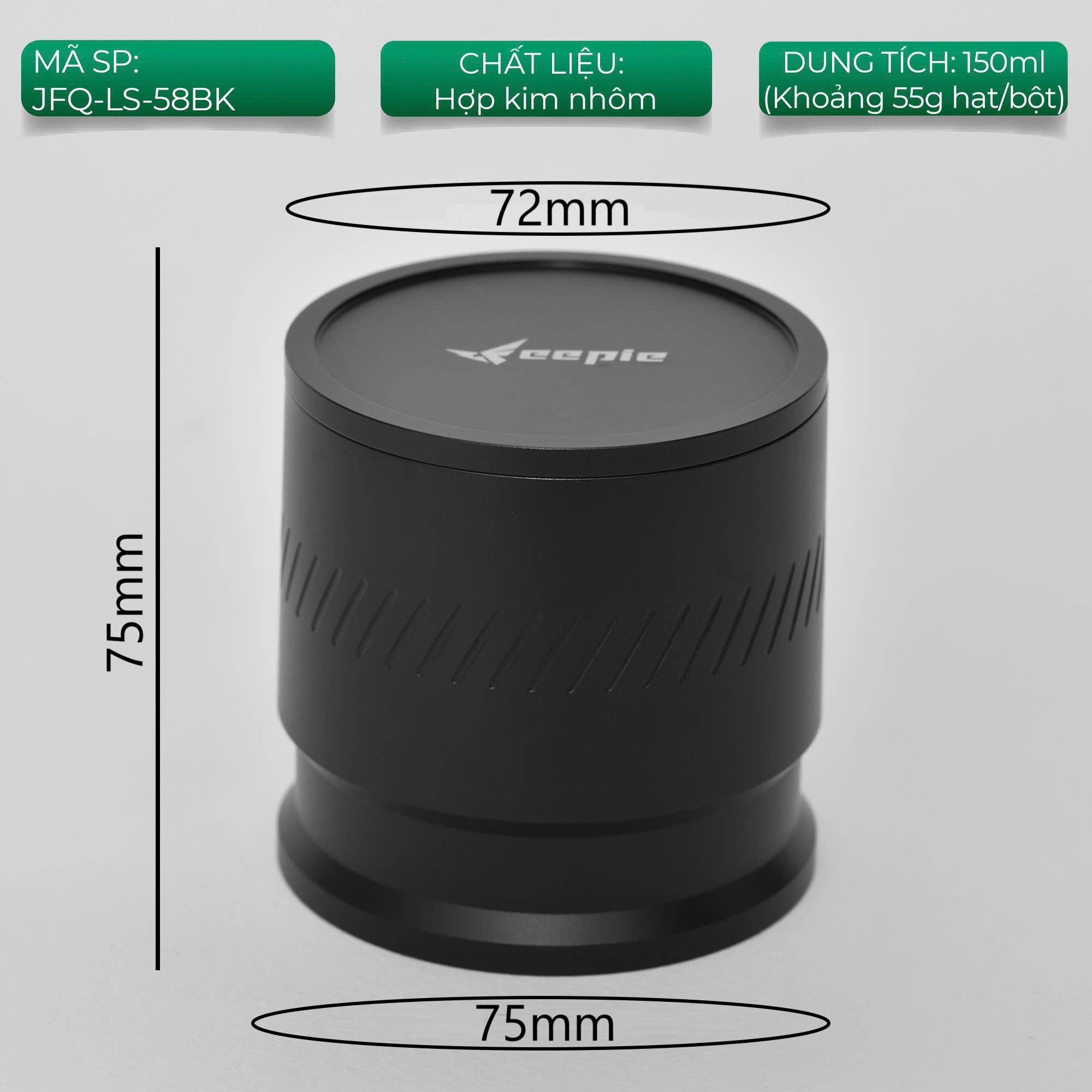 • Đa năng: Phù hợp với máy pha espresso, tay cầm 58mm, máy xay cà phê điện và phễu pha thủ công.