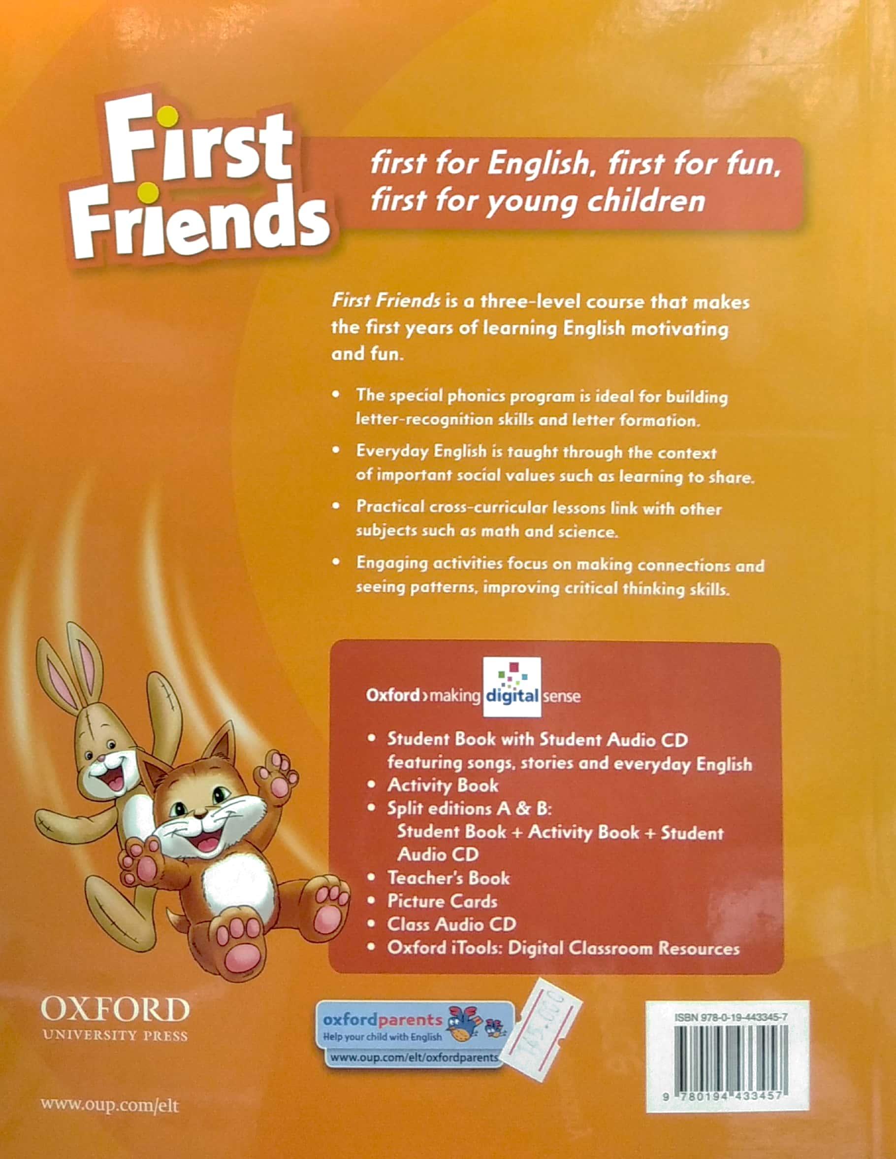 Mua tại TiktokFirst Friends (Ame) 3 Student's Book & Audio CD Pack First Friends is a fun two-level beginner's course that develops vocabulary, practises phonics, and teaches family values. First Friends makes children's first year of learning English motivating and fun. A regular unit cycle and engaging support resources help you create a positive learning environment where children can develop confidence, build vocabulary skills, and practise phonics. The carefully researched phonics programme gives you lessons that are ideal for children who don't use the Roman alphabet. Use Little Friends to extend First Friends to a three-level course.