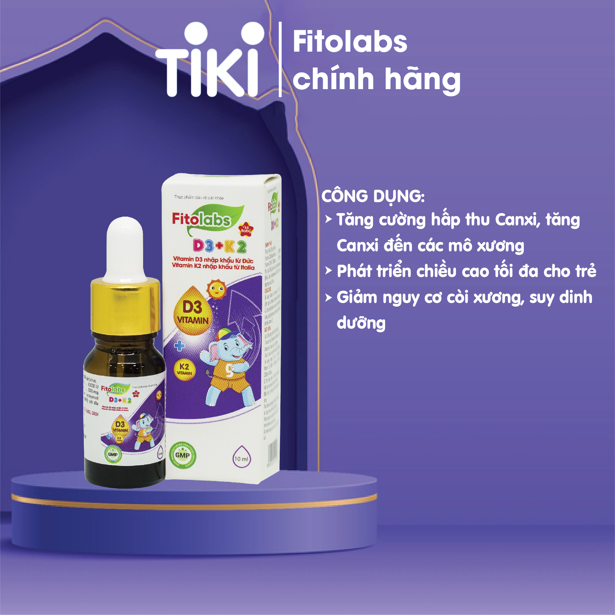 Fitolabs D3 - K2 dạng nhỏ giọt, bổ sung vitamin D3 K2 giúp bé tăng chiều cao, xương răng chắc khỏe. Fitolabs D3 - K2 bổ sung bộ đôi vitamin D3 và vitamin K2 giúp tăng cường hấp thu Canxi, tham gia vào quá trình tái tạo xương, giúp tăng chiều cao, cho xương răng chắc khỏe, giảm nguy cơ còi xương, suy dinh dưỡng.