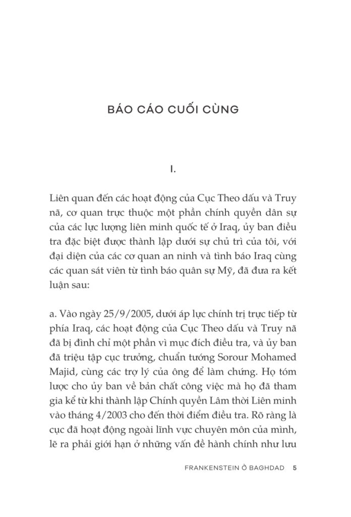 Cho đến nay, những gì ta biết về Iraq và cuộc chiến Iraq chủ yếu là từ nguồn phương Tây, lọc qua cách nhìn và nghĩ của phương Tây. Cuốn sách này cho ta cơ hội hiếm hoi để đắm mình vào đất nước và cuộc chiến đó thông qua trái tim và khối óc của một nhà văn tài hoa là con của xứ sở đó và đang sống ở thủ đô Baghdad, nơi mà hiện nay, nhiều năm sau chiến tranh, bom tiếp tục nổ, người tiếp tục chết vì bom, và có người, như Ahmed Saadawi, tiếp tục viết văn, mổ xẻ cái số phận chẳng giống ai của đất nước mình. Baghdad, nơi văn chương tồn tại để khôi phục sự hữu lý sát cạnh cái chết vô lý nhất, và nơi có những người như Ahmed Saadawi, viết văn để sự tồn tại của bản thân mình có một ý nghĩa: một hành trình phản kháng sự vô nghĩa.