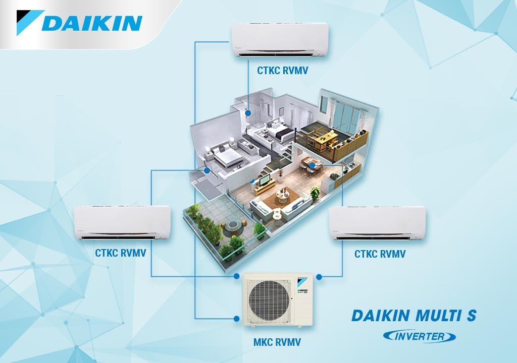 HỆ THỐNG ĐIỀU HÒA KHÔNG KHÍ MULTI LÀ GÌ? Hệ thống điều hòa không khí Multi là máy điều hòa không khí với máy nén đơn (dàn nóng đơn) có thể kết nối với nhiều dàn lạnh. Hệ thống hoàn hảo dành cho các loại nhà nhỏ với không gian lắp đặt dàn nóng hạn chế như chung cư, trả lại không gian ban công cho người sử dụng. Bằng cách giảm số lượng dàn nóng, hệ thống điều hòa không khí Multi cũng góp phần làm giảm độ ồn cùng với việc đi dây điện quá nhiều và nhiệt thải tích tụ gây ra hiện tượng quẩn giócho hệ thống. LÀM LẠNH NHANH Hệ thống điều hòa không khí Multi, được thiết kế và phát triển để làm lạnh nhanh hơn so với model thông thường. Tính năng này cực kì hữu ích khi nhà có khách đột xuất hoặc làm lạnh nhanh cho phòng ngủ. THOẢI MÁI VỚI TỐC ĐỘ QUẠT TỰ ĐỘNG Trong lúc cài đặt tốc độ quạt tự động, khi nhiệt độ phòng gần đạt đến nhiệt độ cài đặt, tốc độ quạt dàn lạnh sẽ tự động giảm để giữ độ ẩm ở mức thấp và tránh việc dừng hoạt động. Với cách thức vận hành này, hệ thống sẽ ít gió lùa trong khi vẫn làm lạnh phòng liên tục.   TIẾT KIỆM NĂNG LƯỢNG Điều khiển môi chất lạnh thông minh Hệ thống điều hòa không khí Multi được thiết kế và phát triển với mục đích tiết kiệm điện năng. "Công nghệ điều khiển môi chất lạnh thông minh" của Daikin cho phép hệ thống điều chỉnh lượng môi chất lạnh để mang lại hiệu suất tối ưu nhất. Máy nén DC Inverter Máy nén của Daikin được phát triển và sản xuất chính hãng có thể tiết kiệm 30% điện năng so với model không inverter. CHỐNG ĂN MÒN VÀ MƯA AXIT Cánh tản nhiệt chống ăn mòn theo tiêu chuẩn JRA9002 của Hiệp hội ngành Điều hòa không khí và điện lạnh Nhật Bản. Bề mặt được phủ một lớp nhựa acrylic mỏng để gia tăng khả năng chống chịu của cánh tản nhiệt đối với mưa axit và ăn mòn do muối. Bản mạch chính là bộ não của máy điều hòa, được bảo vệ bằng một lớp phủ chống ẩm. Tất cả thanh kim loại, bao gồm khung đáy, đều được phủ chống ăn mòn. Ngoài ra, Dàn nóng Daikin sử dụng ốc và tán chống ăn mòn, đã vượt qua Phương pháp thử nghiệm ăn mòn dành cho vật liệu ô tô JASOM609. HOẠT ĐỘNG TRONG ĐIỀU KIỆN ĐIỆN ÁP BIẾN ĐỘNG QUÁ CAO HOẶC QUÁ THẤP MÀ KHÔNG XẢY RA SỰ CỐ! Các thành phần điện như bản mạch chính đóng vai trò quan trọng trong máy điều hòa, vận hành không bình thường sẽ ảnh hưởng đến hoạt động của máy. Vì lý do này, Daikin đã đặc biệt lưu ý đến vấn đề điện áp không ổn định và phát triển các thành phần điện, đặc biệt là bản mạch chính của dàn lạnh và dàn nóng, có thể vận hành ổn định trong điều kiện điện áp biến động.Bo mạch chính có thể chịu được các biến động điện áp cao và thấp từ 130 đến 440V. Máy điều hòa không khí Daikin có thể vận hành bình thường khi điện áp trong khoảng 130 và 264V. Ngay cả khi điện áp biến động đột ngột từ 0 đến 440V, máy điều hòa không khí Daikin vẫn có thể hoạt động trở lại mà không xảy ra sự cố gì. NGĂN NGỪA QUẨN GIÓ Do các căn hộ nhỏ hoặc chung cư có không gian khá hạn chế cho việc lắp đặt nhiều dàn nóng, Ngoài ra, khi các dàn lạnh được lắp đặt gần với nhau mà không đủ không gian tản nhiệt, hiện tượng quẩn gió có thể xảy ra, ảnh hưởng đển công suất làm lạnh, làm giảm hiệu suất và độ bền của máy điều hòa. Multi S cho phép kết nối 3 dàn lạnh vào 1 dàn nóng, giúp tránh được tình trạng quẩn gió, tăng hiệu suất làm lạnh và độ bền của máy. ĐIỀU KHIỂN TỪ XA BẰNG ĐIỆN THOẠI THÔNG MINH - D-MOBILE (TÙY CHỌN) Bất cứ khi nào, bất kỳ đâạn cũng có thể điều khiển máy điều hòa nhà mình!Bộ điều hợp tùy chọn này và ứng dụng của nó biến chiếc điện thoại thông minh thành điều khiển từ xa, có thể sử dụng trong nhà hoặc bên ngoài. Kết hợp với nhau giúp duy trì sự thoải mái trong khi vẫn tiết kiệm điện năng và loại bỏ nỗi lo quên tắt điều hòa.