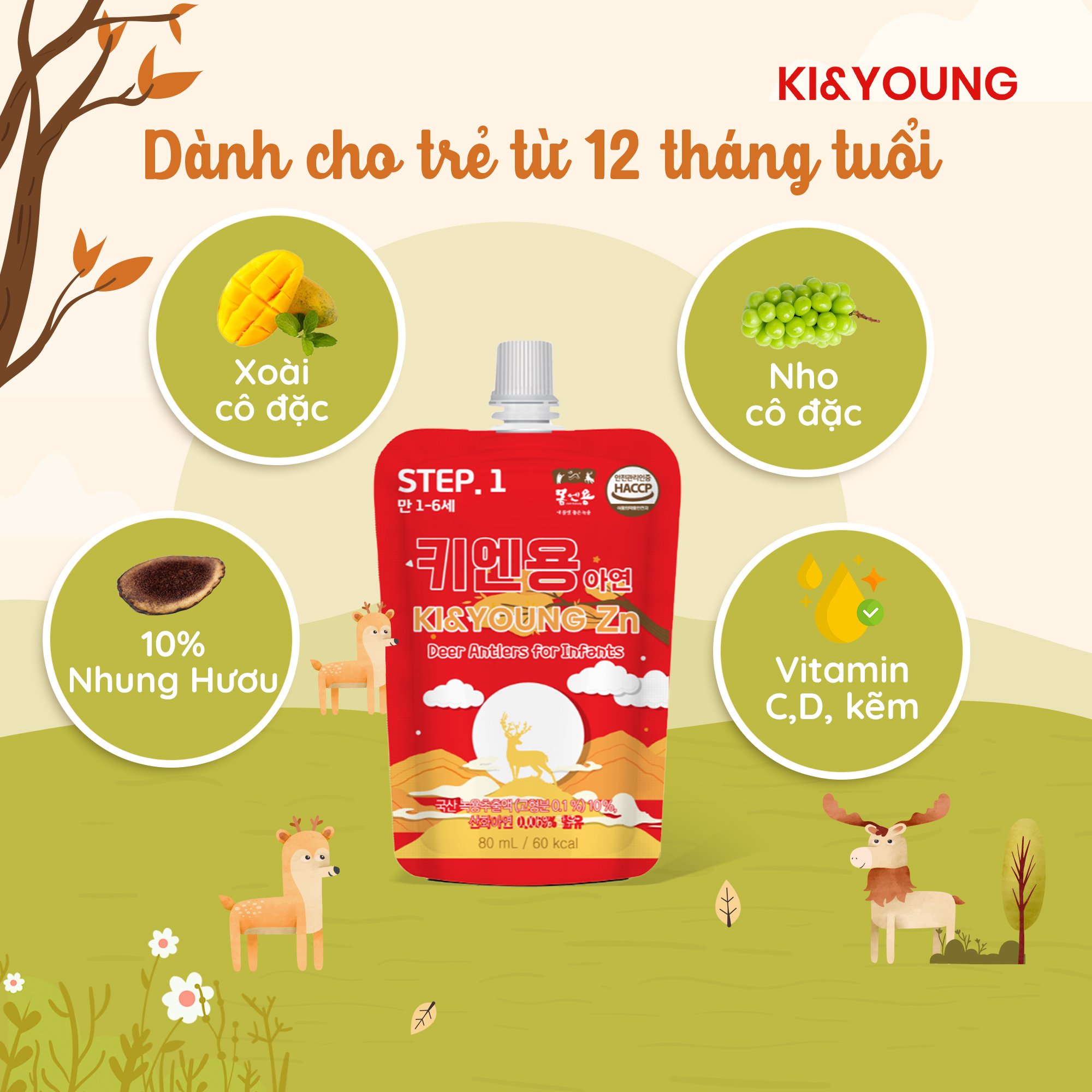 Tên sản phẩm: Gạc hươu non/Nước nhung hươu cho bé Ki&Young.