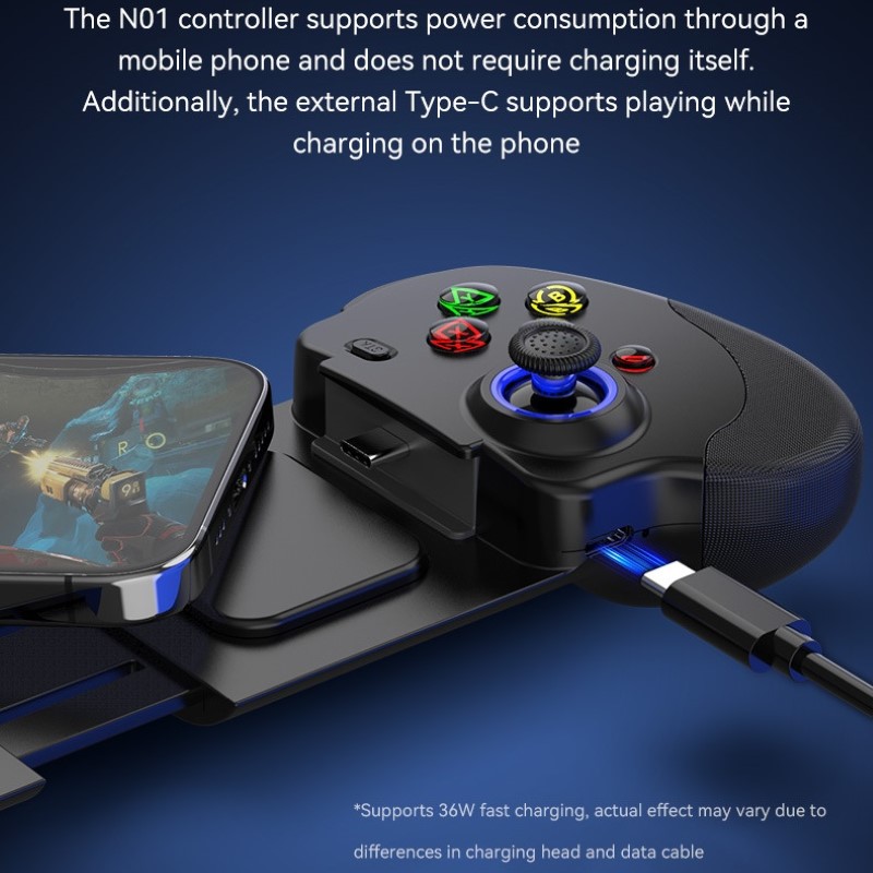 . Gamepad Tay Game gắn trực tiếp điện thoại N01 siêu nhạy , không độ trễ , sạc được cho điện thoại . Kết nối trực tiếp với điện thoại qua cổng sạc TypeC . Nguồn : Cổng TypeC . Trọn Bộ bao gồm Gamepad + sách hướng dẫn . Cần điều khiển 360 độ