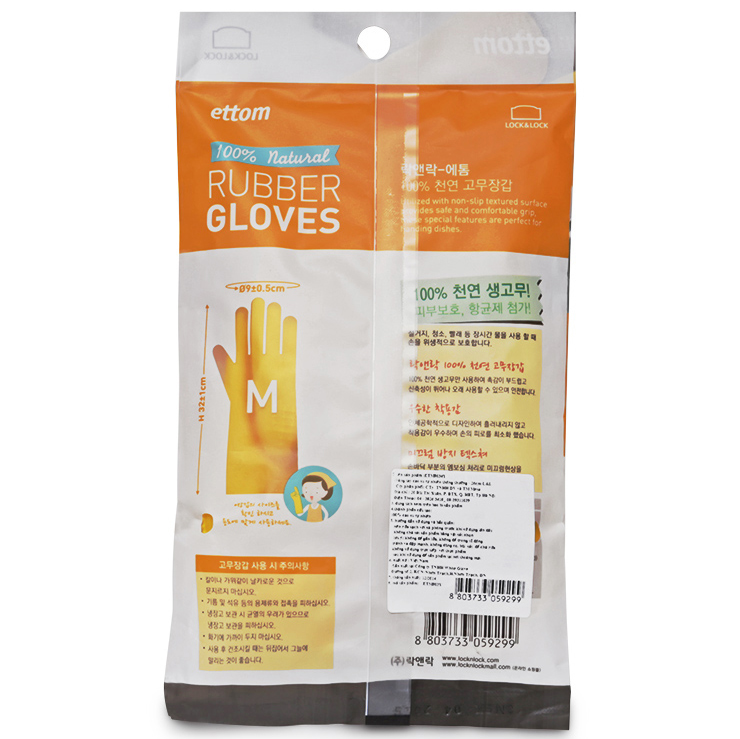 Giới thiệu sản phẩm Găng tay cao su tự nhiên Lock&Lock - Thông số sản phẩm + ETM804Y: Size S: Dài 26cm, Màu vàng + ETM803Y: Size M: Dài 32cm, Màu vàng + ETM801P: Size