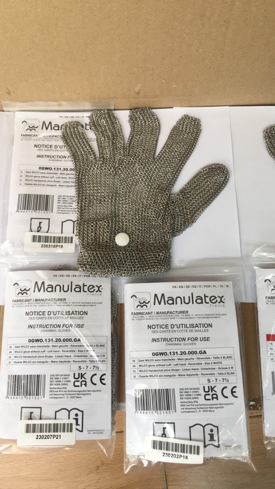 Mua tại TiktokGĂNG TAY CHỐNG CẮT WILCO THƯƠNG HIỆU MANULATEX CỦA PHÁP Chất liệu: thép ko rỉ Hãng: MANULATEX - PHÁP Đơn vị tính: Cái Size : No 2 - trắng S 7-7 1/2 No 3 - đỏ M 8-8 1/2 Tiêu Chuẩn : EN ISO 1082-1, EN 14328, ISO 13999-1 Đặc điểm: Có thể dùng cả hai tay, bằng thép không rỉ, dùng được trong ngành chế biến thực phẩm, công nghiệp, dệt may, hoặc trong trường hợp làm việc với các vật có cạnh sắt nhọn dao, kéo, cư