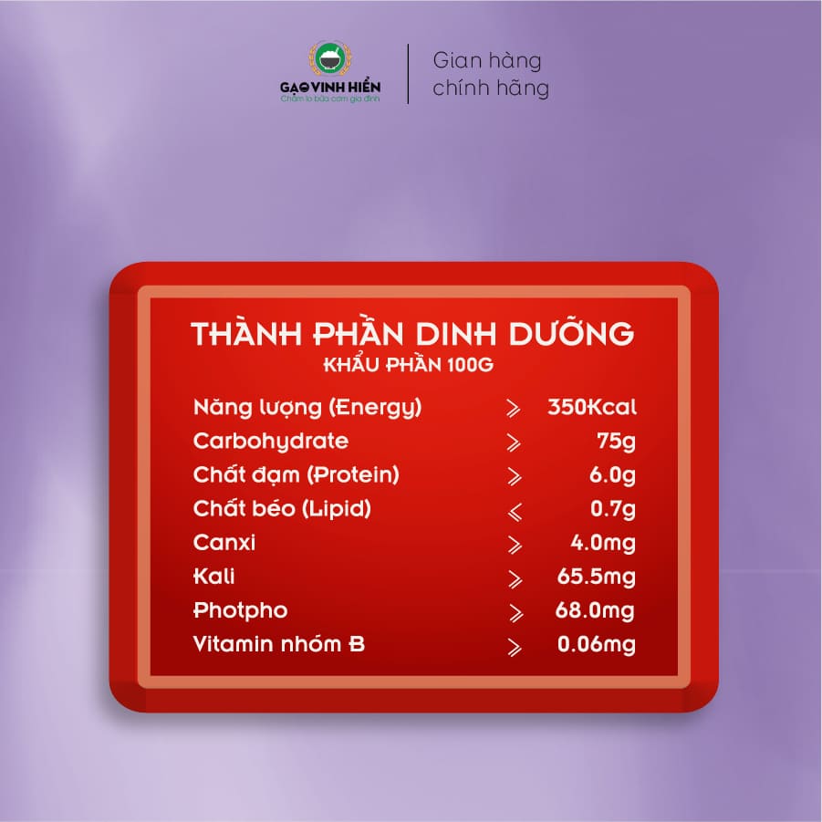 - Được giao trồng và sản xuất kỹ lưỡng, đạt chuẩn HACCP HƯỚNG DẪN SỬ DỤNG: B1: Rửa gạo bằng nước sạch 1 lần, không nên vo kĩ để lưu giữ được lớp cám gạo nhiều dinh dưỡng. B2: Đong nước và gạo với tỉ lệ 1 chén gạo, 1.5 chén nước. B3: Cho vào nồi cơm điện và cắm điện. Nên chọn chế độ nấu lâu (30-45 phút) để hạt cơm được chín kĩ và thơm ngon hơn. B4: Dùng cơm nóng cùng các món ăn, chúc gia đình có những bữa cơm thơm ngon và nhiều dinh dưỡng. Lưu ý: Bạn có thể thêm hoặc giảm lượng nước nếu thấy cơm khô hoặc nhão nhiều. BẢO QUẢN: