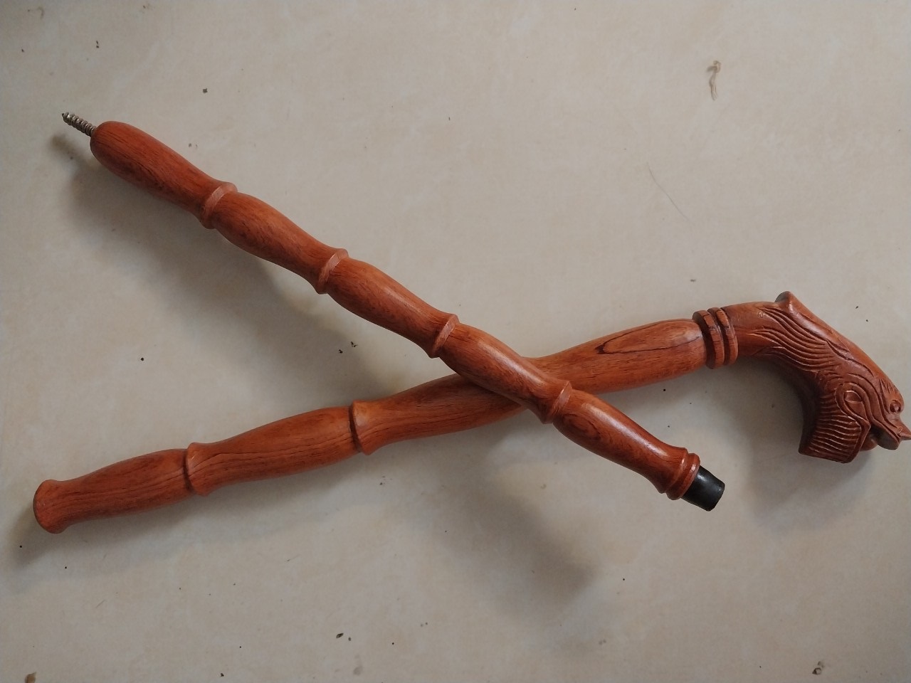 Gậy batoong đầu rồng thân đốt trúc gỗ hương