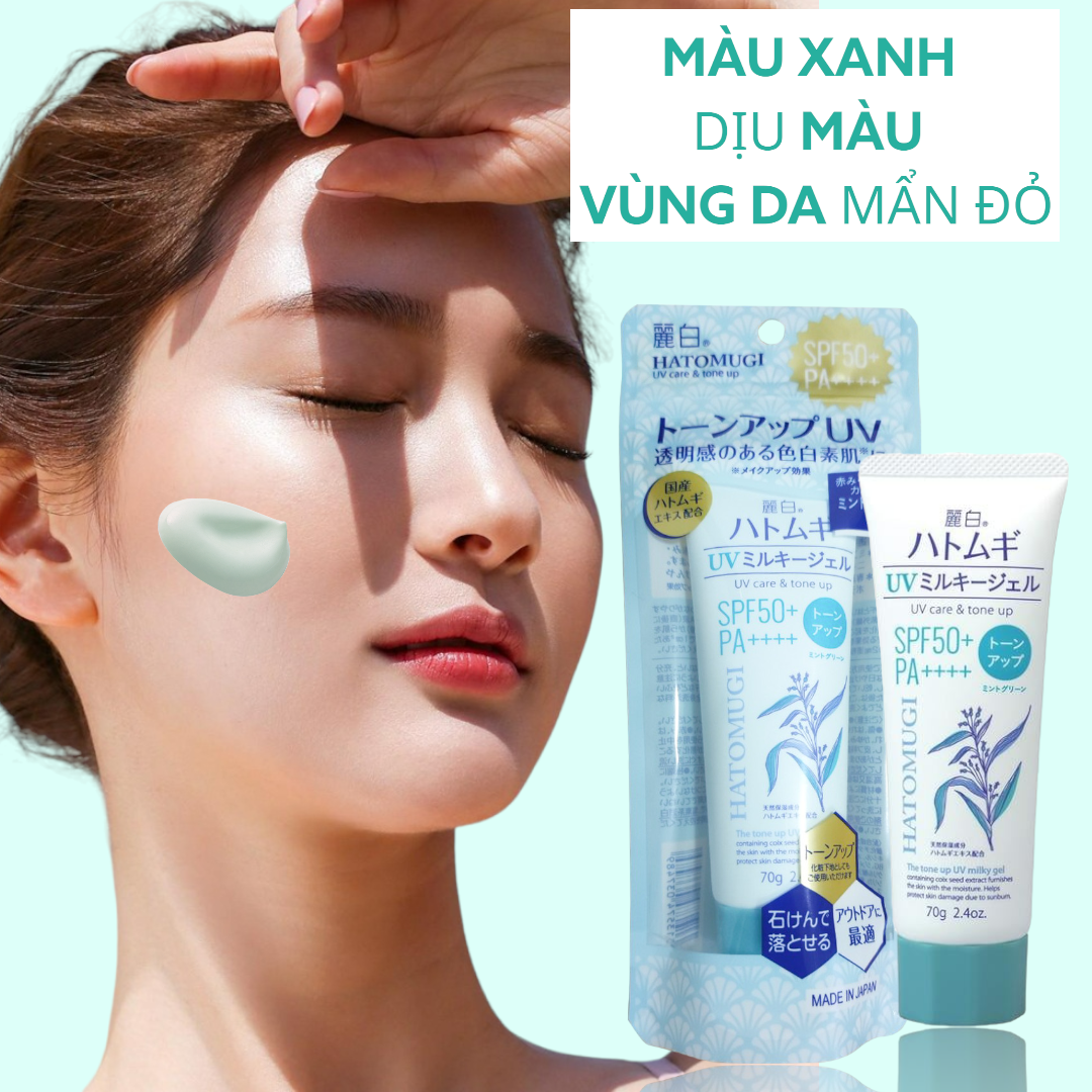 Gel Chống Nắng Hatomugi UV Care & Tone Up Milky Gel SPF50 Pa++++ Mint Green Nâng Tone Và Dưỡng Sáng Da - 70g
