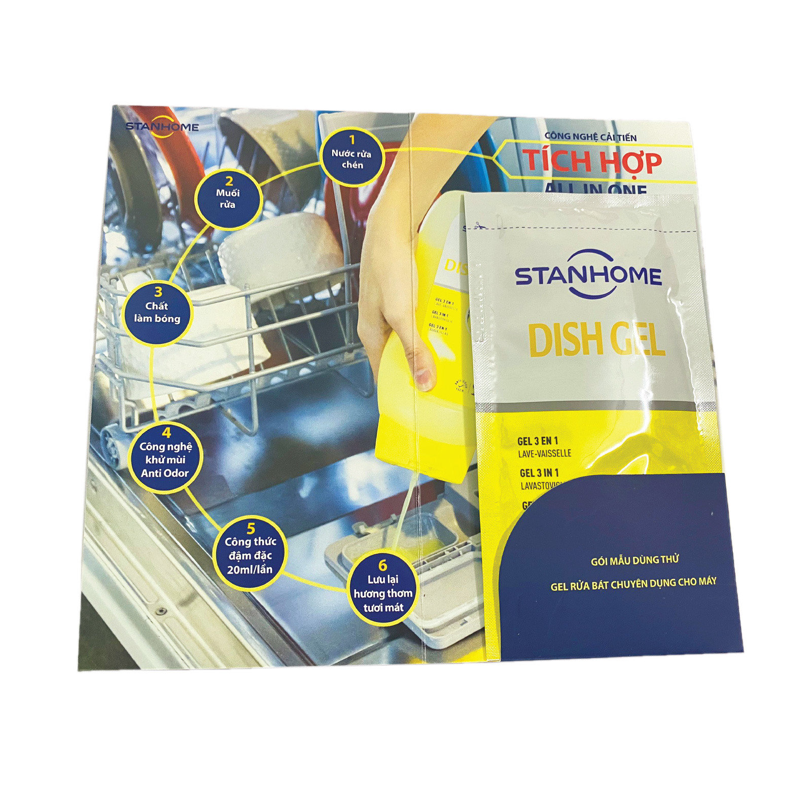 DISH GEL Gel rửa bát chuyên dụng cho máy rửa bát All in One Xuất xứ: Pháp Sản xuất tại: Bỉ Dung tích: 720ml Công dụng: - Gel rửa bát đậm đặc chuyên dụng cho