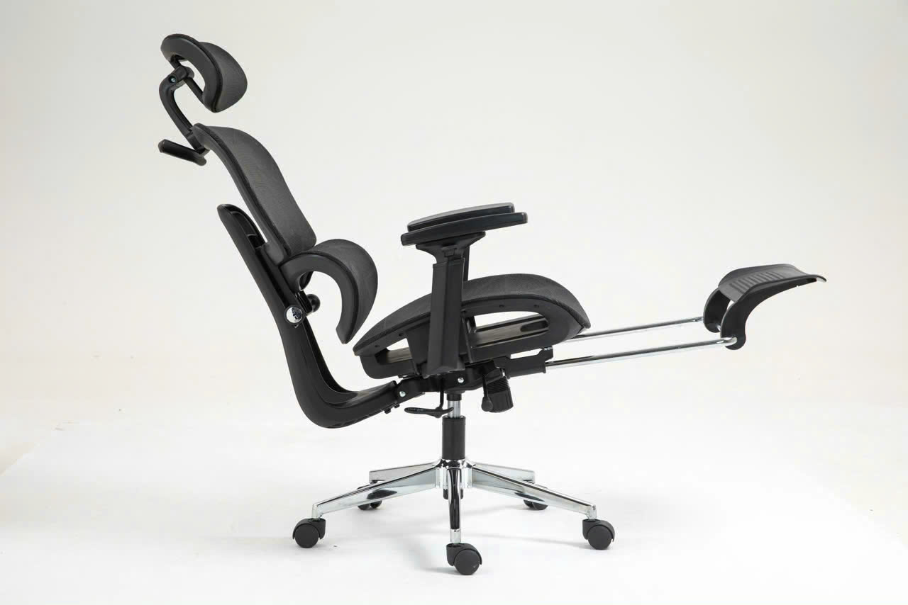 Tựa đầu điều chỉnh đa hướng, hỗ trợ cổ gáy khi làm việc lâu.