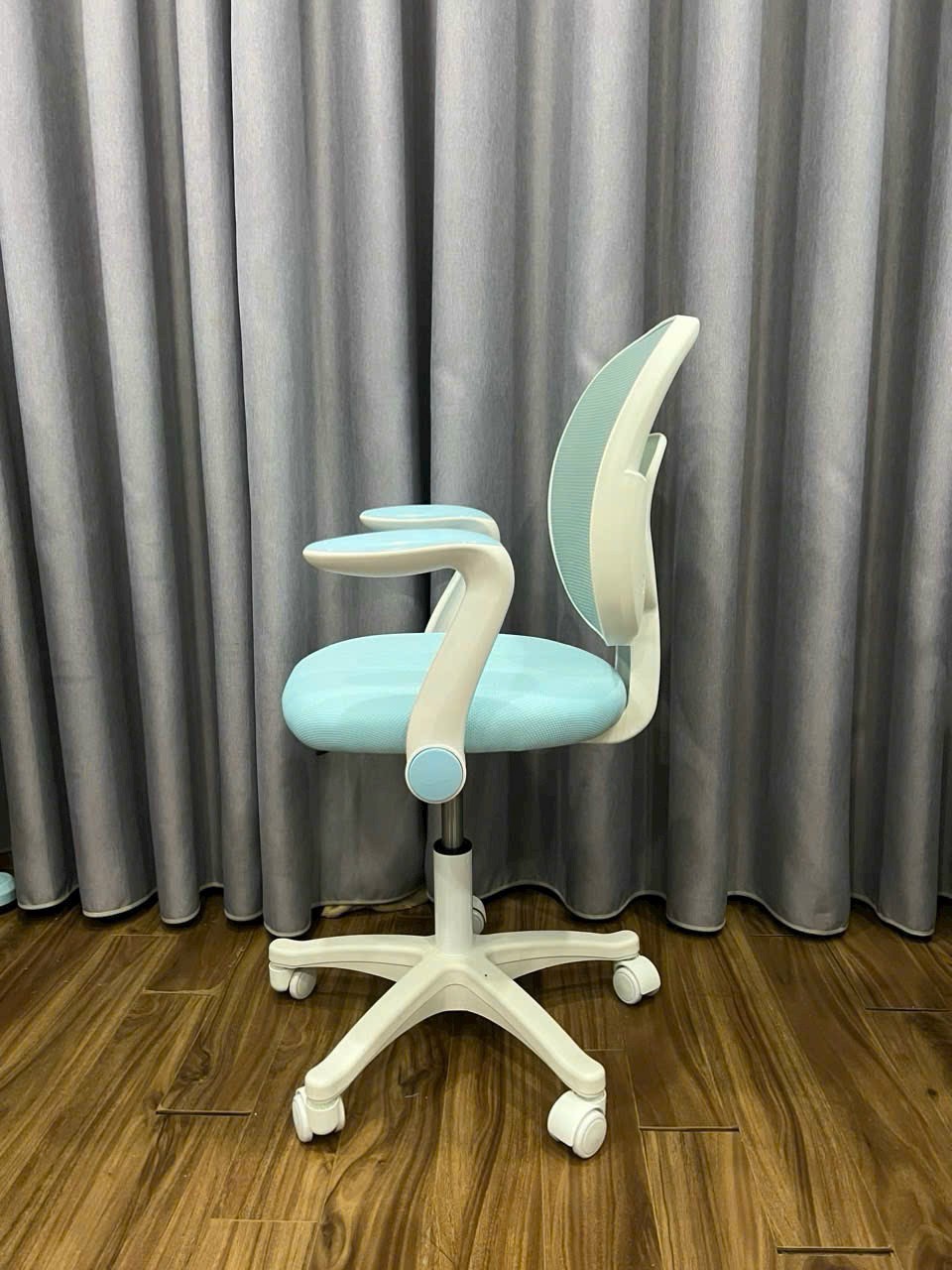 Ghế xoay trẻ em màu xanh dương CE1013-M Nội thất Capta Ghế ngồi học bài màu xanh dương cho bé trai lưng lưới nệm vải có tay tựa màu trắng - Chất liệu: nệm và
