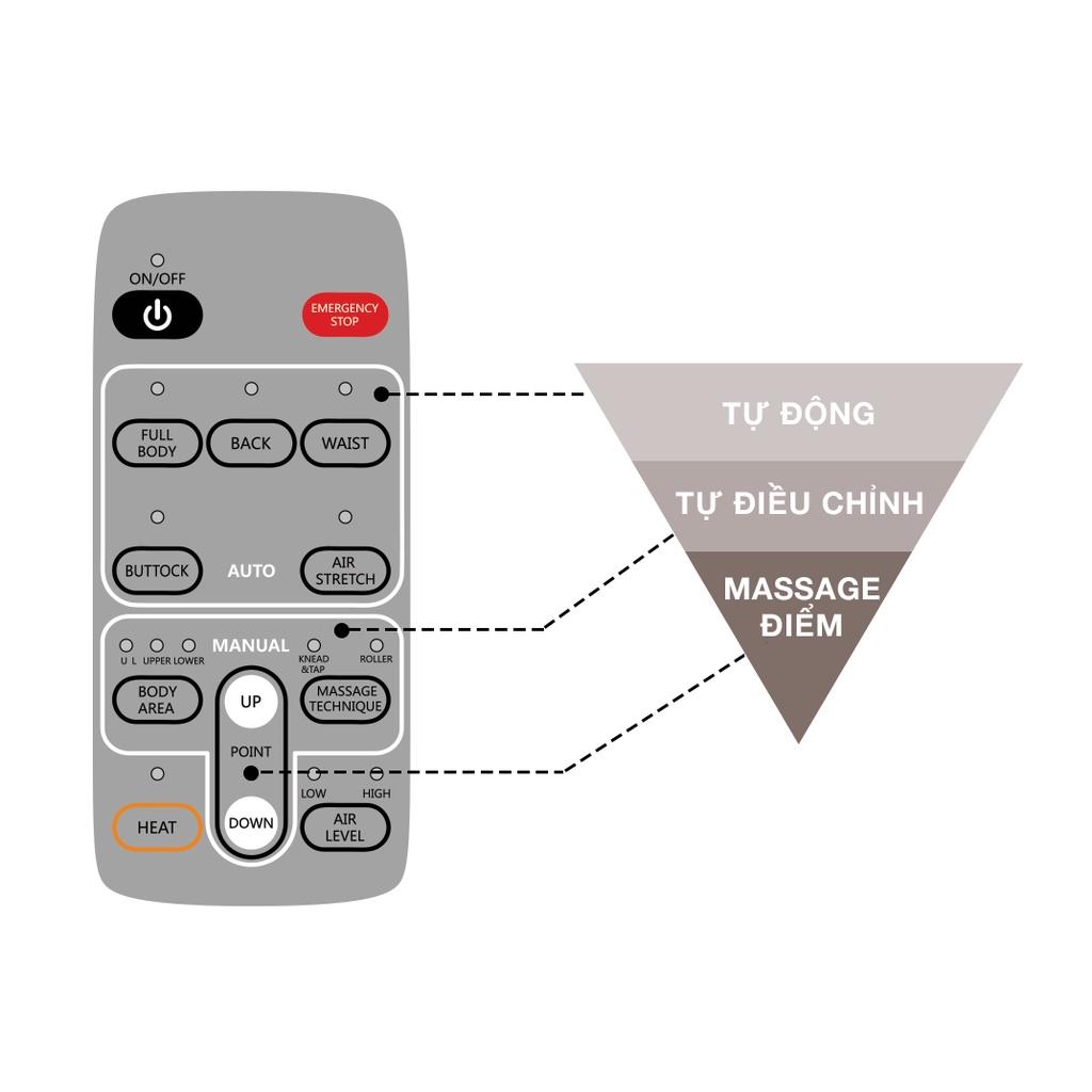 Công nghệ AIR FLEX: Bí quyết đằng sau sự thư giãn hoàn hảo: Công nghệ AIR FLEX sử dụng hệ thống túi khí thông minh, được lập trình để tạo ra lực kéo giãn nhẹ