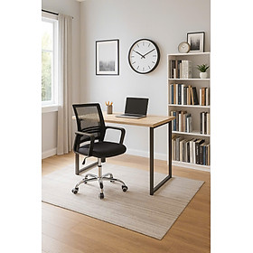 - Tên sản phẩm: Bàn làm việc kèm tủ hồ sơ tiện lợi - Chất liệu: Mặt bàn gỗ mdf dày 30mm phủ melamin chống xước - Khung thép chống gỉ phủ sơn tĩnh điện - Màu sắc: Gỗ trắng - khung chân đen - Kích thước: Bàn 120x60x75cm - Tủ 60x40x69cm - Công năng: Là mẫu bàn làm việc có thiết kế hiện đại kèm tủ hồ sơ đa năng phù hợp tại nhà và cả văn phòng làm việc
