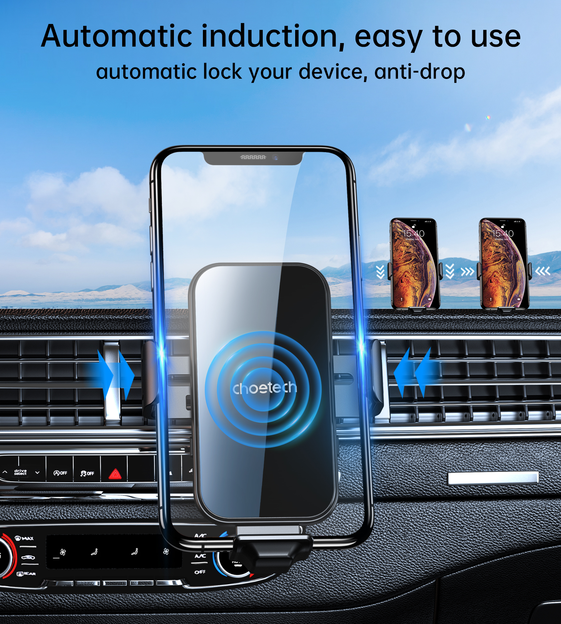 ✨Gía đỡ điện thoại Choetech T201 tích hợp sạc không dây trên ô tô 15w - Hàng chính hãng