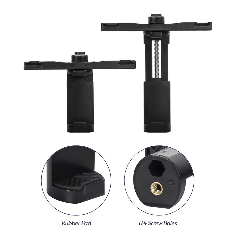 Mua tại TiktokFeature: Multifunctional phone holder, made of ABS material, lightweight and durable. Phone clip extended range is 6cm-11.5cm, compatible with most of smartphones on the market. Soft rubber pads cover the contact parts of phone and phone holder, no scratch to your smartphone. With dual cold shoe mounts for installing mini LED light or microphone to make your shooting more professional. 1/4 inch standard screw holes allows you to fix the phone clip to tripod stand for more stable usage. Specifications: Color: Black Material: ABS Compatible Phone Width: 6cm-11.5cm Item Weight: 76g/ 2.7oz Note: Only the phone holder is included. Package List: 1 * Phone Holder
