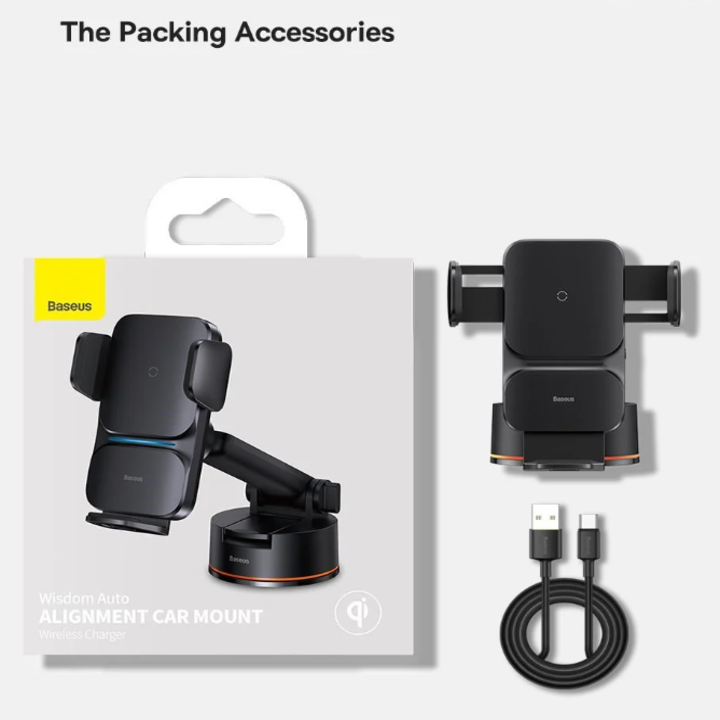 Giá đỡ điện thoại kiêm sạc không dây cao cấp gắn taplo, kính lái Baseus