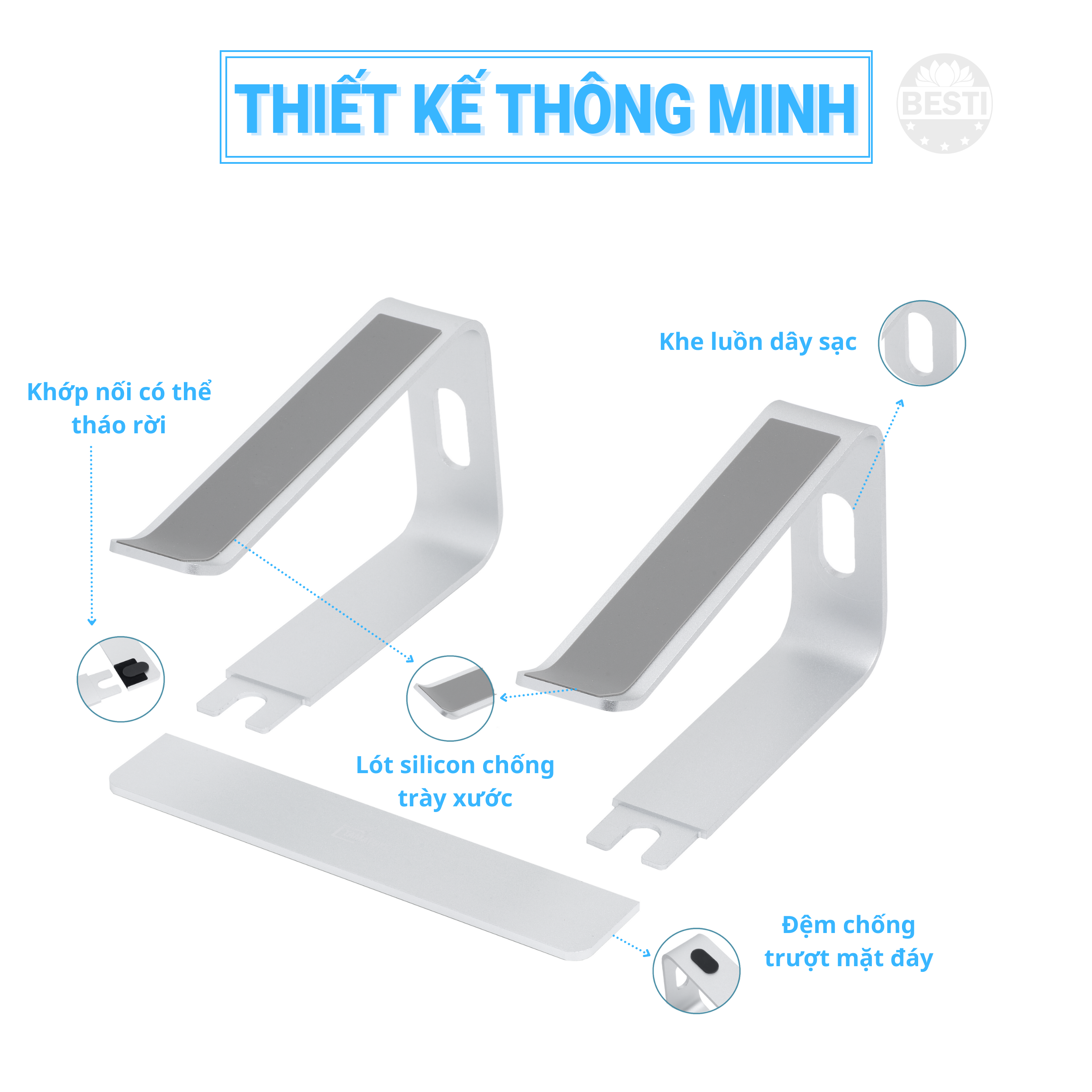 Giá Đỡ Máy Tính Laptop Macbook Besti BTY01 Hợp Kim Nhôm Cao Cấp Giúp Tản Nhiệt Có Thể Tháo Rời - Hàng Chính Hãng