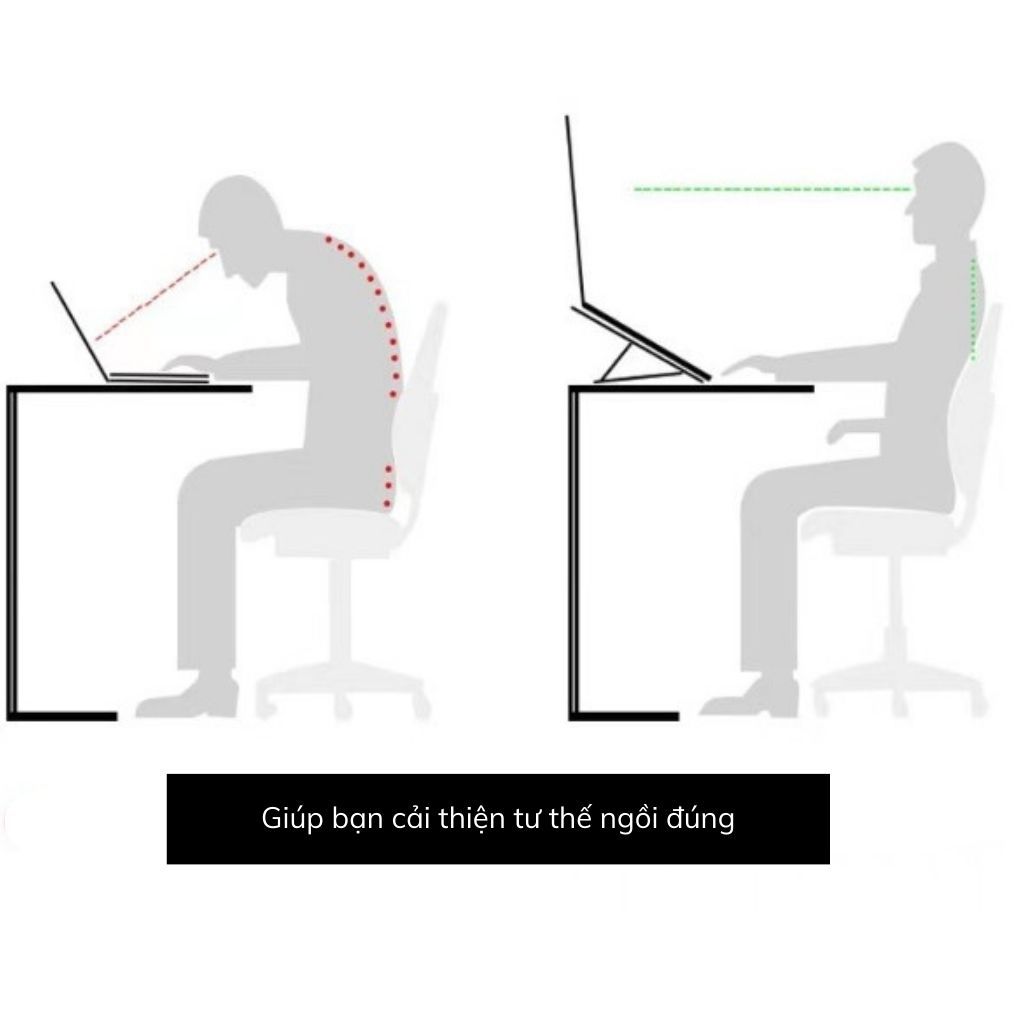 Giá đỡ máy tính xách tay có thể điều chỉnh chiều cao khác nhau giúp giảm đau vai và thắt lưng, bảo vệ mắt, loại bỏ mỏi tay, thiết kế thông gió và tránh thiết bị quá nóng.
