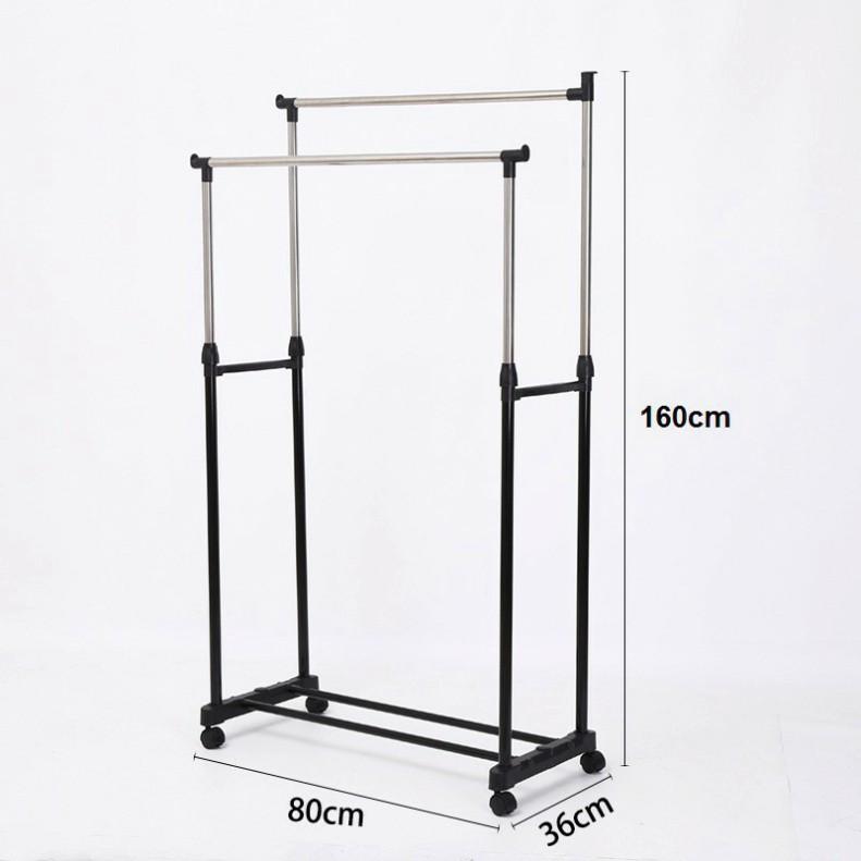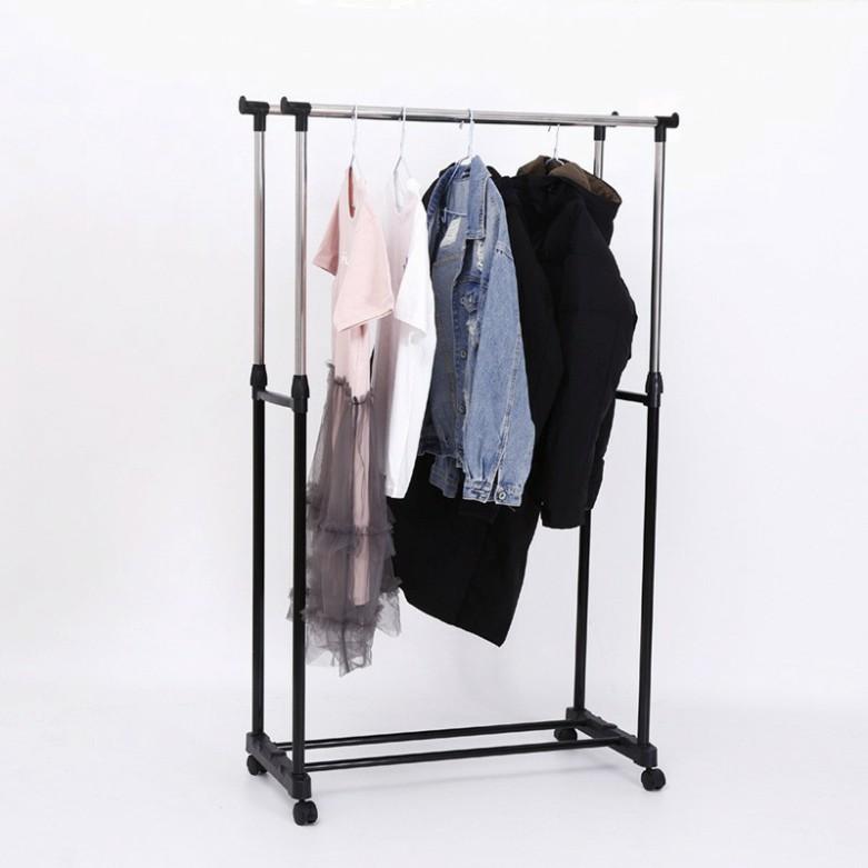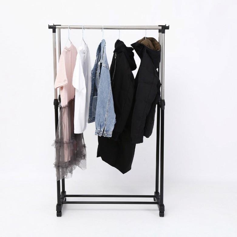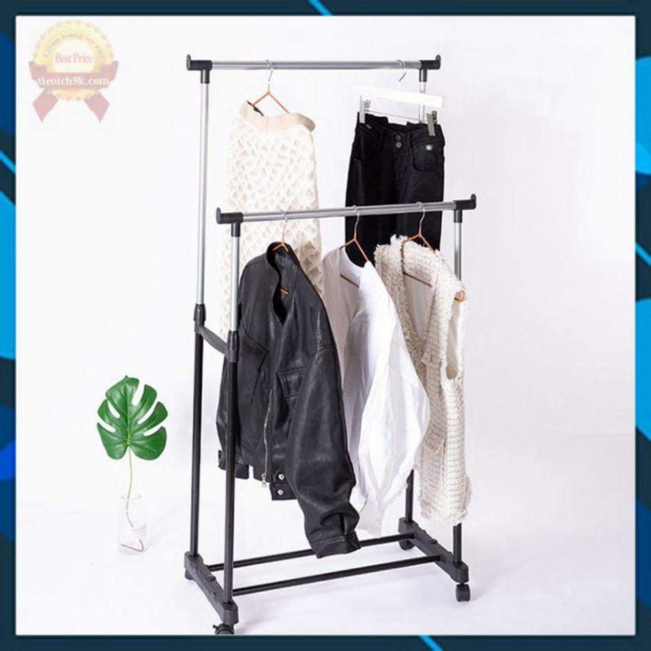 • Giá Phơi Quần Áo, Xào Phơi Đồ, Giàn Phơi Inox Thông Minh 2 Tầng Có Bánh Xe Tiện Di Chuyển