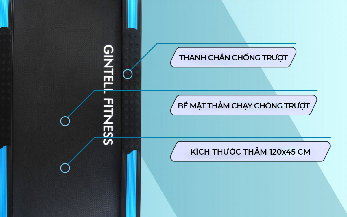 2. Bề mặt thảm chạy cùng thanh ray chống trượt Với kích thước 120x45cm, thảm chạy chống trượt và 2 thanh chống trượt mang đến cho bạn trải nghiệm tập luyện thoải mái và an toàn nhất.