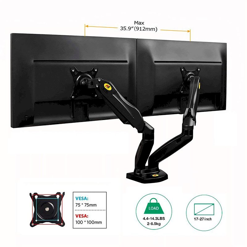 ✨Giá Treo 2 Màn Máy Tính Gắn Bàn Đa Năng Nhập Khẩu North Bayou F160 (17-27 inch)