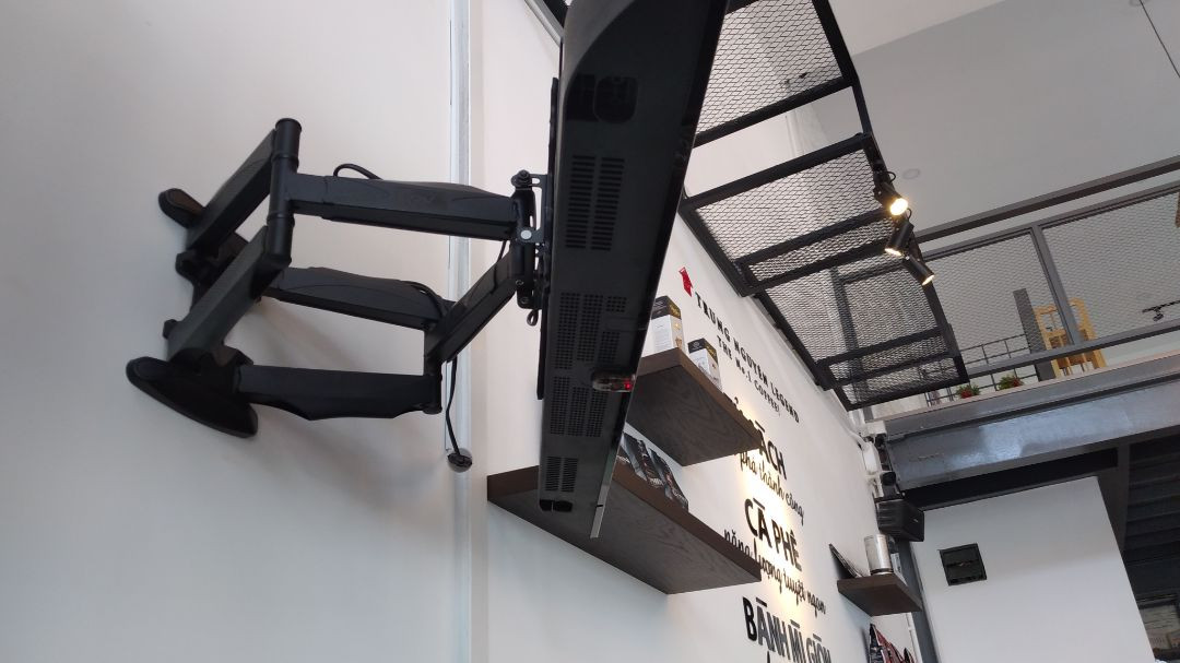 Sản phẩm giá treo LCD F120 được lắp đặt một cách dễ dàng trên tường. Thiết kế xi lanh ống khí giúp màn hình có thể xoay theo mọi hướng và theo độ cao