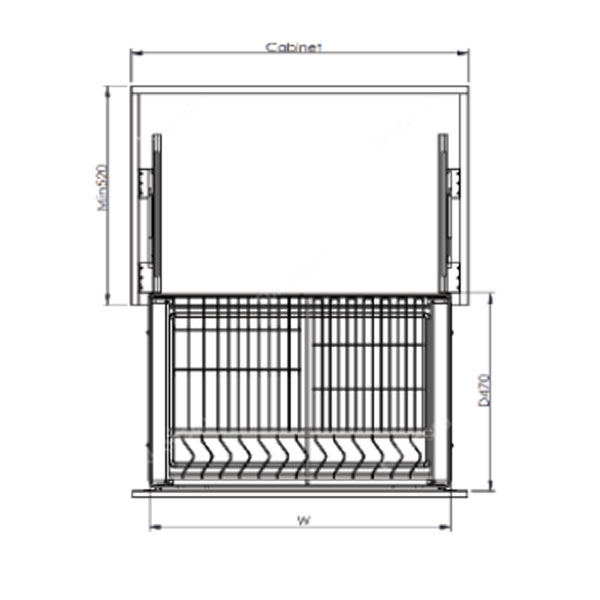 GIÁ BÁT ĐĨA NÂNG HẠ EU3E-70.304 Quy cách SP (S*R*C): W665*D280*H650 Khoang tủ (mm): 700