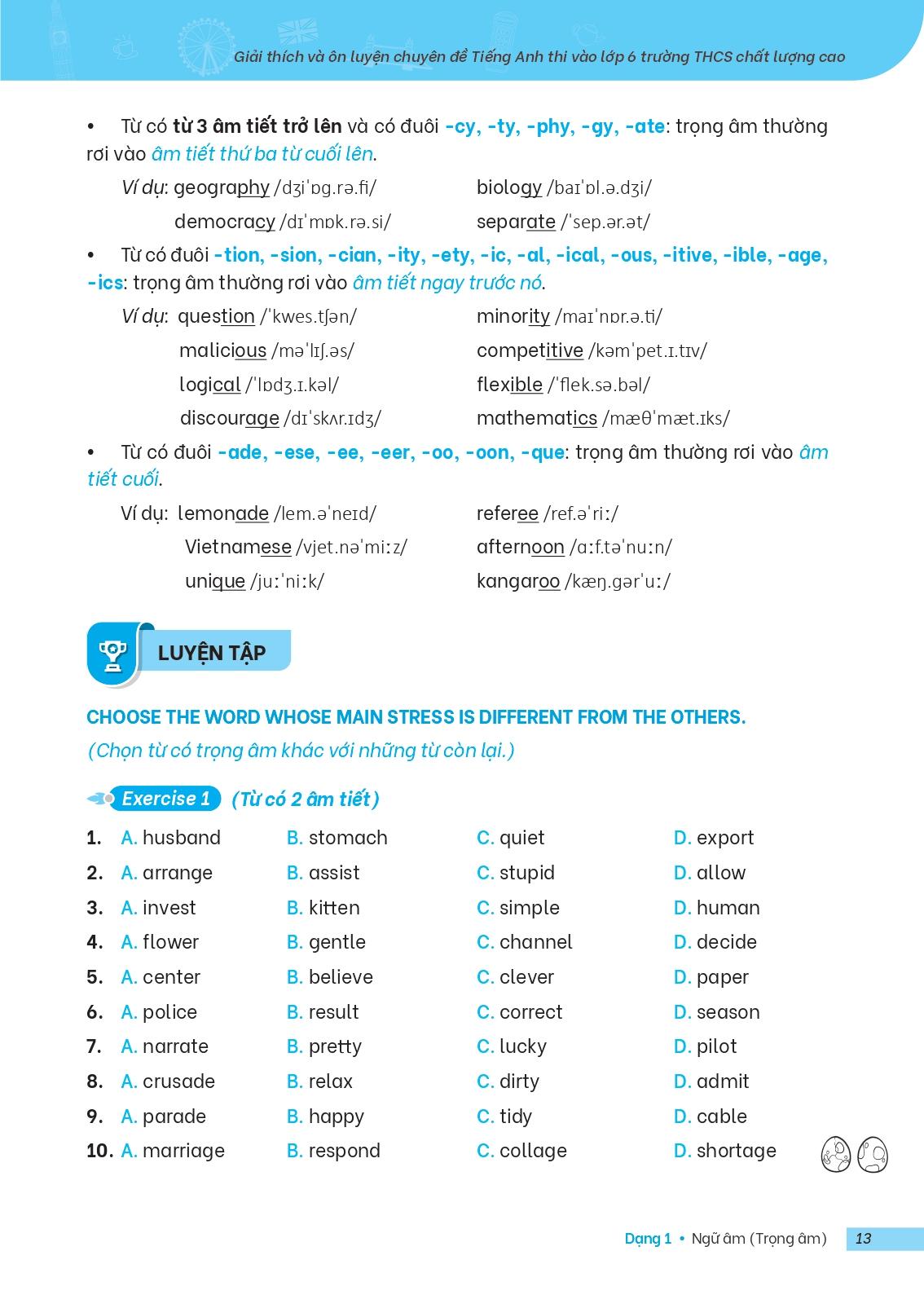 Giải Thích Và Ôn Luyện Chuyên Đề Tiếng Anh Thi Vào Lớp 6 Trường THCS Chất Lượng Cao Giải thích và ôn luyện chuyên đề Tiếng Anh thi vào lớp 6 trường THCS chất lượng