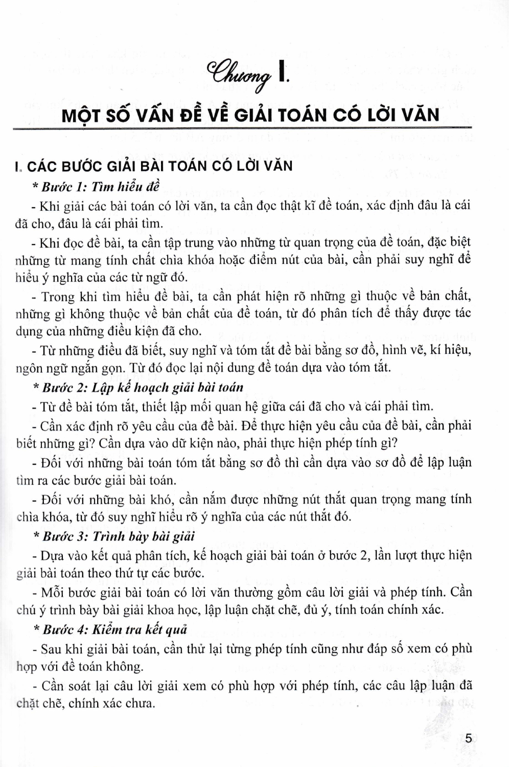 Giải Toán Có Lời Văn 5 (Dùng Chung Cho Các Bộ SGK Hiện Hành) Toán có lời văn là các bài toán gắn với thực tế cuộc sống hàng ngày. Giải các bài toán có lời văn là việc học sinh vận dụng các kiến thức đã được học vào để giải quyết các tình huống gắn với thực tế. Thông qua các bài toán có lời văn, giáo viên sẽ giúp học sinh rèn luyện kĩ năng sống một cách hiệu quả nhất. Cuốn “Giải toán có lời văn 5" được biên soạn nhằm giúp các em học sinh lớp 5 rèn luyện và phát triển kĩ năng giải các bài toán có lời văn. Cuốn sách cũng là một tài liệu tham khảo thiết thực cho các thầy cô giáo trong quá trình giảng dạy nhằm phát triển năng lực học toán cho học sinh. Cuốn sách được viết dựa theo chương trình nội dung sách giáo khoa Toán 5 - Chương trình giáo dục phổ thông 2018 gồm các chủ đề sau: Chương 1: Một số vấn đề về giải toán có lời văn. Chương II: Một số bài toán có lời văn gắn với phân số. Chương III: Một số bài toán có lời văn về tỉ số phần trăm. Chương IV: Một số bài toán có văn về chuyển động đều. Trong mỗi chương, các em học sinh sẽ được ôn tập và hệ thống lại các kiến thức cơ bản bằng các ví dụ đã được chọn lọc một cách phù hợp và dễ hiểu nhất. Từ lí thuyết cơ bản, các em sẽ được làm quen với các dạng bài tập, đó là các dạng bài thường hay xuất hiện trong các kì giao lưu toán tuổi thơ các cấp và các để thi tuyển chọn vào các Lớp 6 trường chuyên. Mỗi dạng bài đều có các ví dụ minh hoạ các cách giải cụ thể, tường minh giúp các em nắm chắc được cách giải từ đó áp dụng để giải các bài luyện tập. Trong phần hướng dẫn, chúng tôi có đưa ra cách giải chi tiết các bài luyện tập để học sinh, các thầy cô và các bậc phụ huynh tham khảo. Hi vọng cuốn sách sẽ đáp ứng được nhu cầu phát triển năng lực cho học sinh lớp 5 trong giải toán có lời văn. Hãy góp ý cho chúng tôi để nội dung cuốn sách ngày càng hoàn thiện hơn. Rất mong nhận được sự trao đổi của bạn đọc.