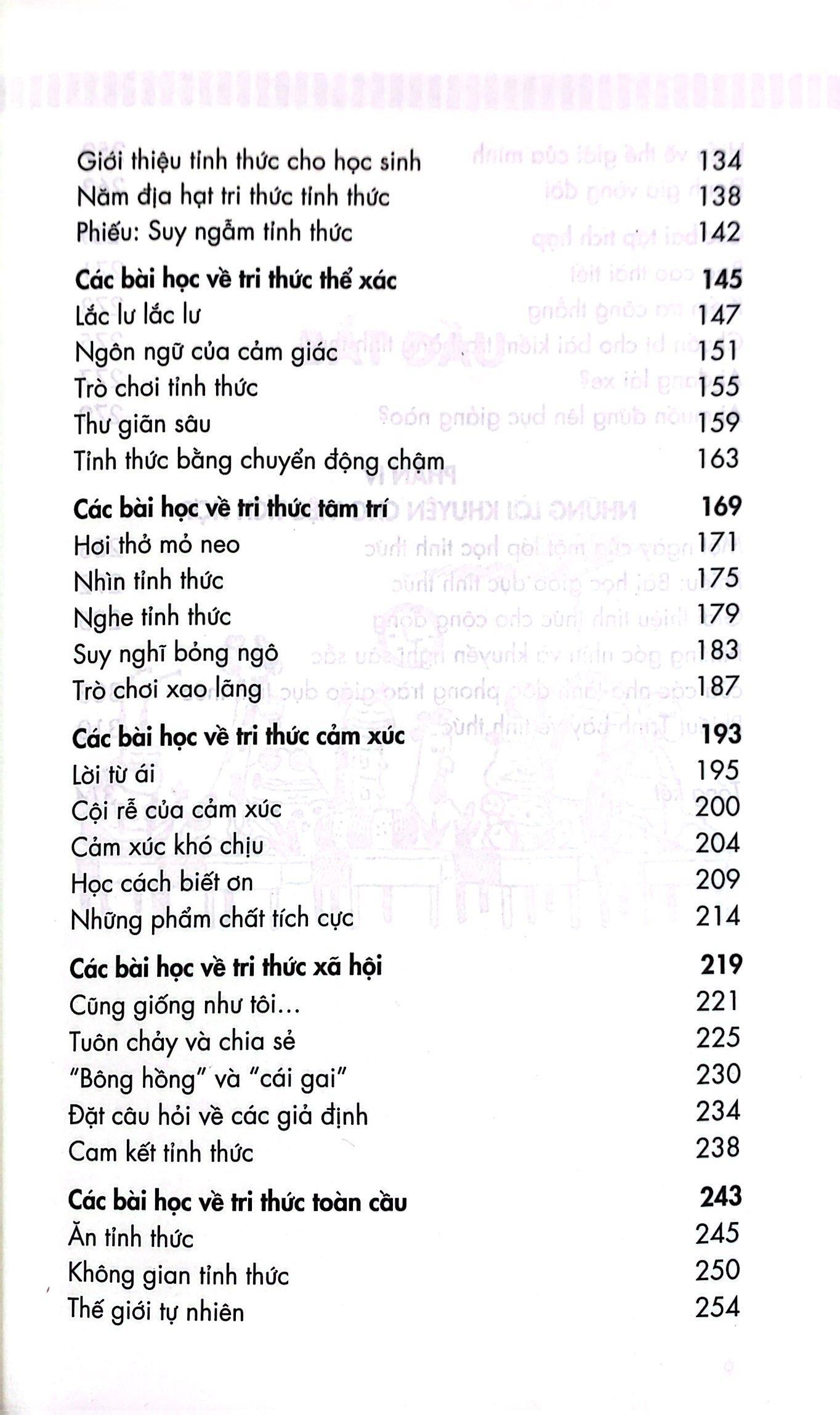 Sách bài tập này trao cho độc giả các công cụ cần thiết để tích hợp tỉnh thức vào môi trường học tập cũng như đời sống của mọi học sinh, giáo viên và bất cứ ai quan tâm đến giáo dục thế hệ tương lai.