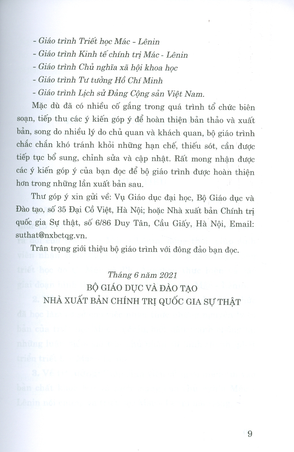 Giáo trình cung cấp những tri thức hiểu biết có tính nền tảng và hệ thống về triết học Mác - Lênin; xây dựng thế giới quan duy vật và phương pháp luận biện chứng duy vật làm nền tảng lý luận cho việc nhận thức các vấn đề, nội dung của các môn học khác; nhận thức được thực chất giá trị, bản chất khoa học, cách mạng của triết học Mác - Lênin. Cuốn sách là tài liệu cần thiết, nhằm cung cấp tài liệu giảng dạy, học tập cho giảng viên, sinh viên chuyên ngành lý luận chính trị các trường đại học theo chương trình mới.