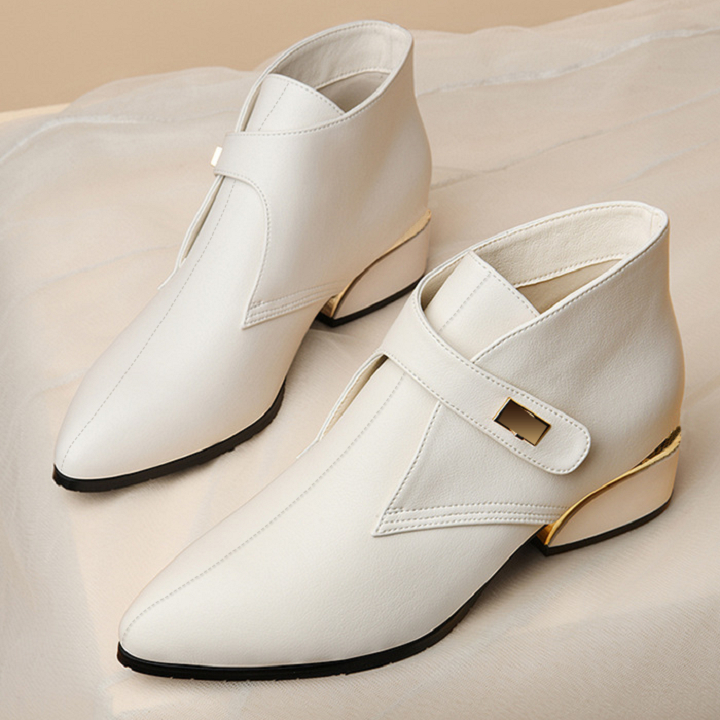 ROSATA - thương hiệu giày thời trang nữ cao cấp THUẦN VIỆT NHƯNG CHẤT LƯỢNG QUỐC TẾ ---- Giày bốt nữ cổ ngắn màu trắng kem 4p RO308 ROSATA tại BCASHOP khóa nút tiện lợi,