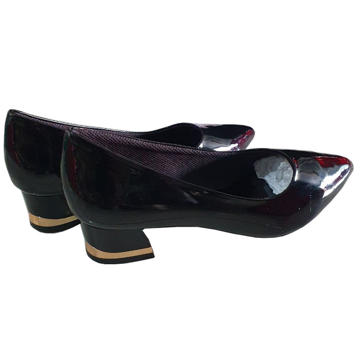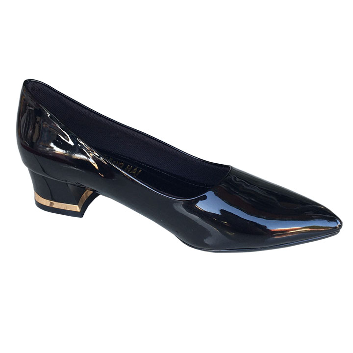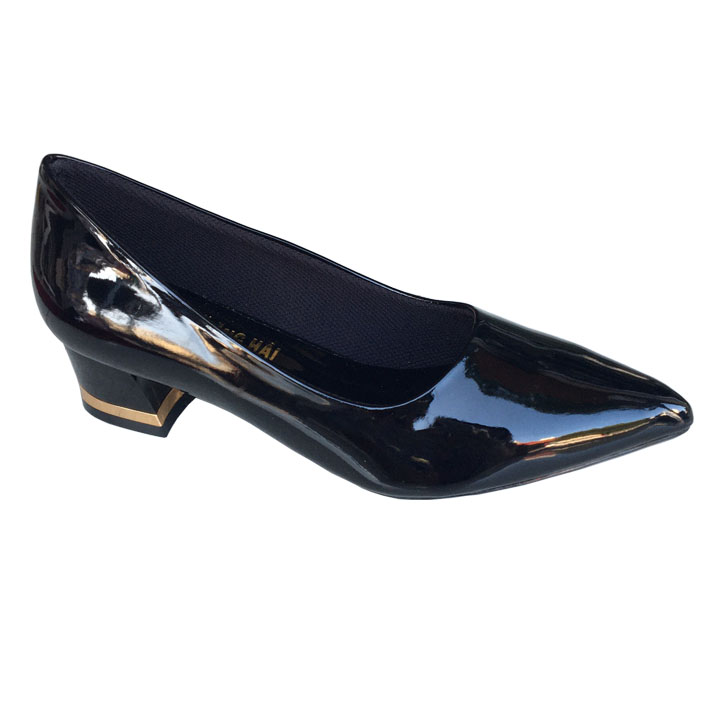 ✨Giày cao gót bít mũi Trường Hải đế vuông 3cm da bóng đen GCG120