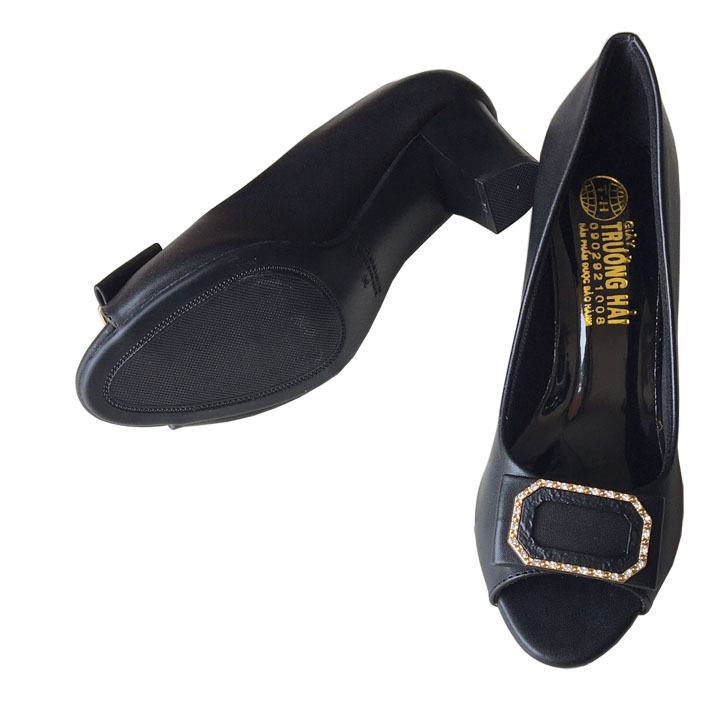 Giày cao gót hở mũi gót trụ 5cm TH CG046 được gia công tại nhà nên được làm bằng nguyên vật liệu cao cấp mang lại sự sang trong khi sử dụng