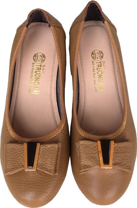 ✨Giày đế xuồng nữ 3cm Trường Hải đính nơ xinh da bò mềm mại màu vàng thời trang , đế xuống cao su DX0132
