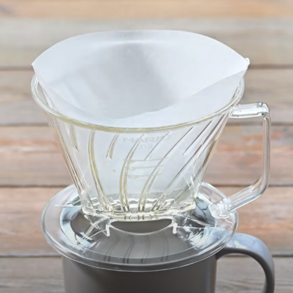 - Loại giấy lọc được tẩy trắng (bleached): Có hai loại chất tẩy được sử dụng chính trong quá trình sản xuất giấy lọc là Clo và Oxy. Trong đó việc tẩy trắng bằng oxy hóa được coi là an toàn và đáng tin cậy. Giấy lọc cà phê Hario tẩy trắng bằng công nghệ oxygen, rất an toàn và được tin dùng trên toàn thế giới.