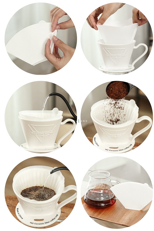 Thông sô sản phẩm: + Tên sản phẩm: Ceramic Dripper While Kalita + Chất liệu: Gốm men sứ + Dung tích : size 102 _ 2 – 4 tách ( tương đương 150 – 600ml