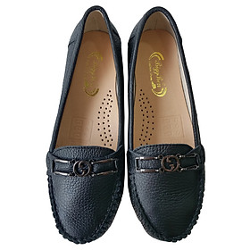 Giày Đế Bằng Giày Lười Nữ Da Bò Thật Siêu Mềm Sang Trọng Evelynv GB0916 (Đen)