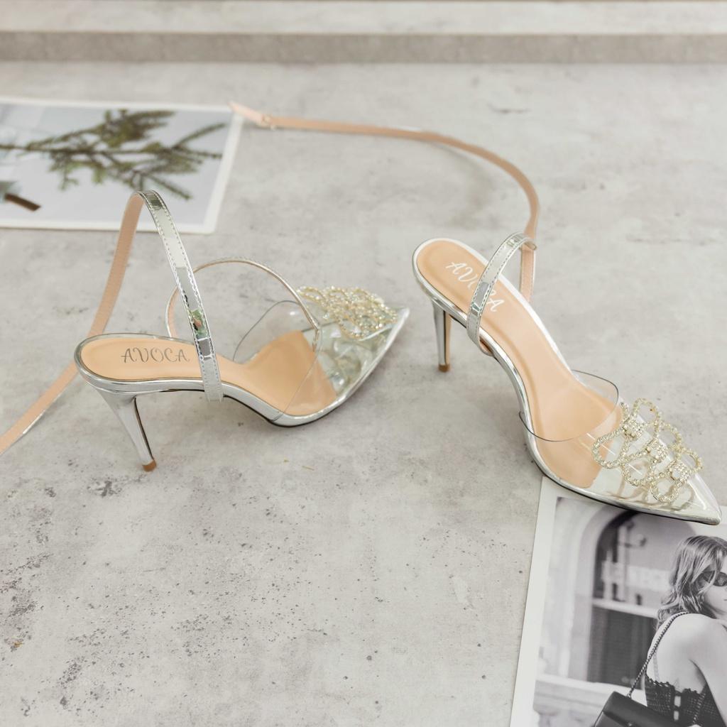 Giày mũi nhọn nơ bạc cô dâu gót 9cm
