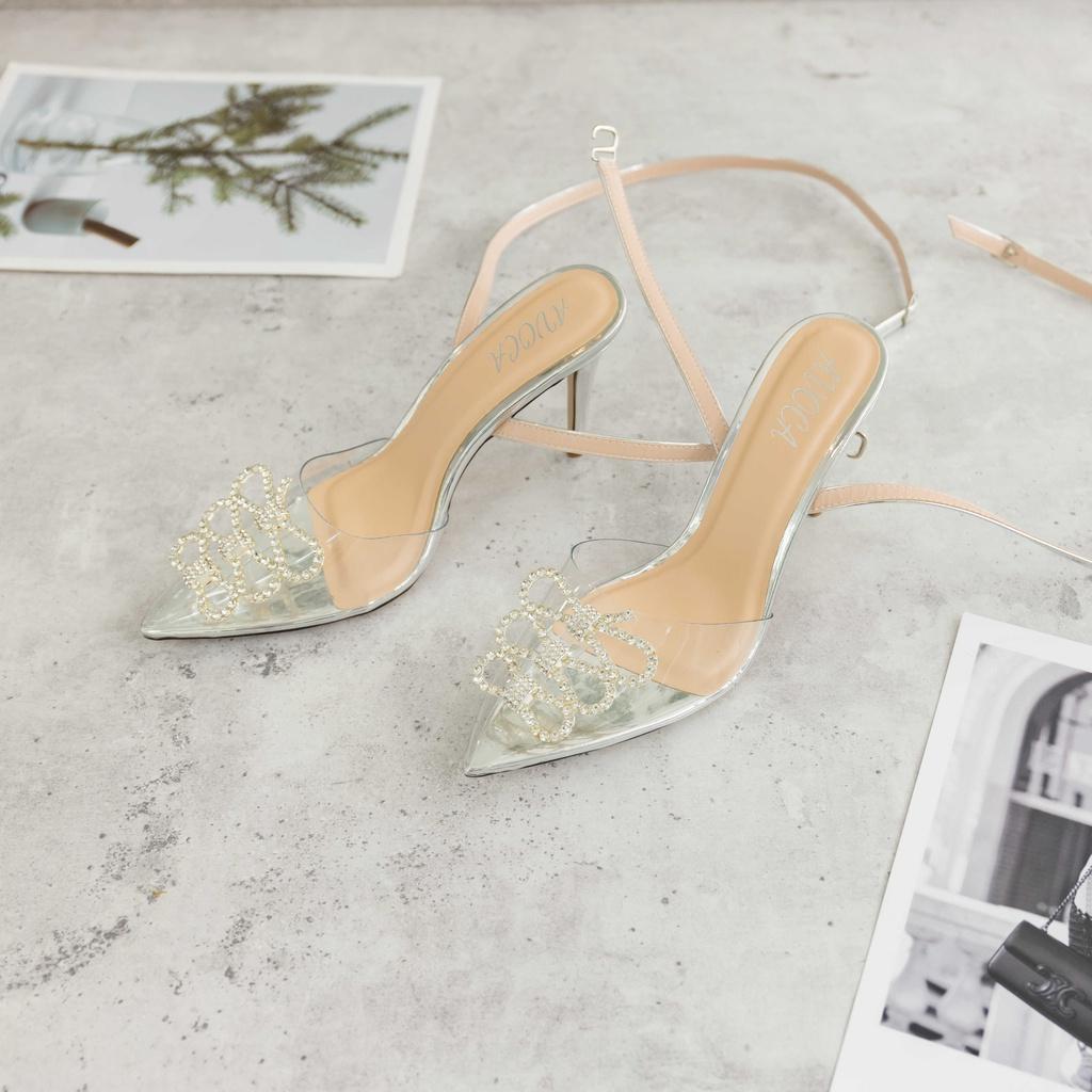 ✨giày mũi nhọn gót bạc đính nơ đá cao cấp ( bảo hành 1 năm - free shipping)