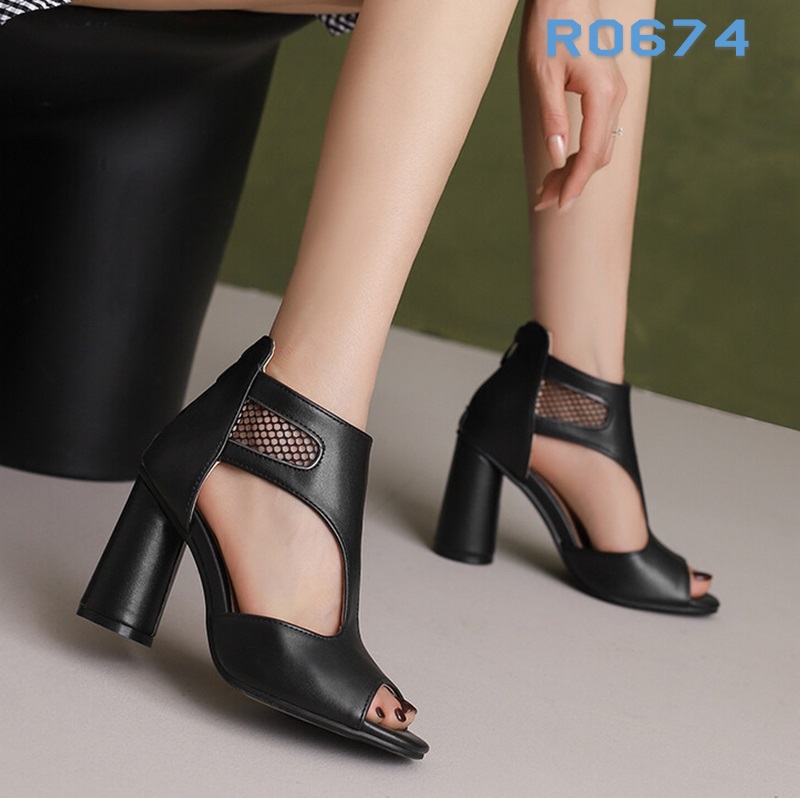 MÔ TẢ SẢN PHẨM: Giày nữ cao gót hở mũi, cổ cao ROSATA RO674 -7p- Đen, Nude - BKSTORE