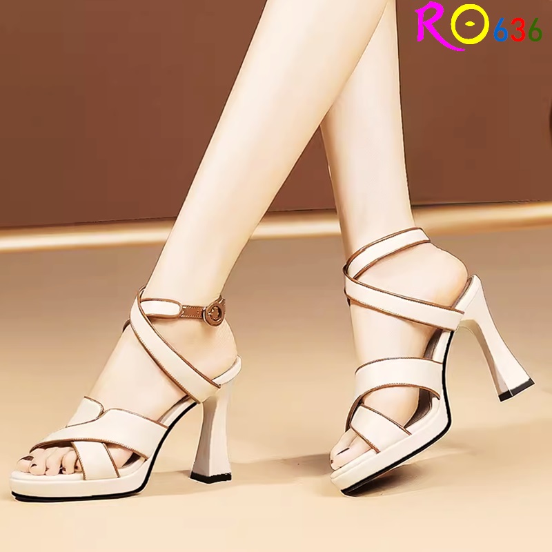 ✨Giày sandal nữ cao gót 8 phân hàng hiệu rosata màu kem thời trang cao cấp ro636