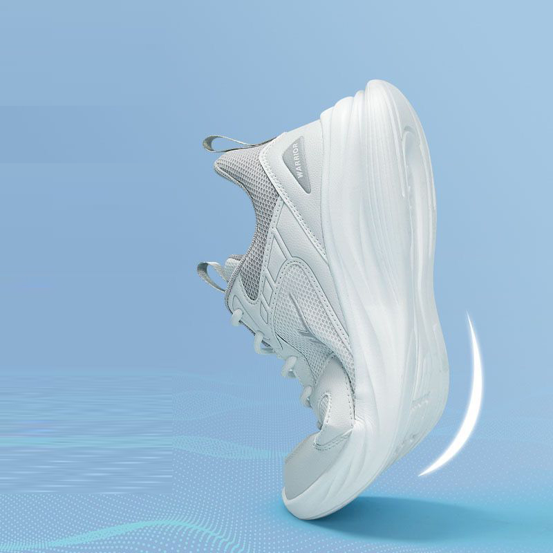 Đế giày - lựa chọn chất liệu Phylon làm nên đế giày thể thao cho các chị em. Vì tính chất nổi bật của vật liệu này là trọng lượng siêu nhẹ (nặng chỉ 300g/chiếc) và độ đàn hồi cao. Nhờ đó, phần lớn khách hàng sử dụng sản phẩm ngay từ lần đầu tiên đều có cảm giác đôi chân “nhẹ như bay”, bước đi thoải mái và thỏa thích vận động ở mọi tư thế theo cách riêng mà không lo đau mỏi chân. - Mặt đế thiết kế thêm những rãnh chống trượt, bố trí dày đặc nhằm tăng độ ma sát. Qua đó giúp người mang vận động thoải mái, bước đi vững chắc và bảo đảm an toàn tối đa, nhất là khi di chuyển trên những địa hình trơn nhẵn hoặc thời tiết ẩm ướt. Thân giày - Thân giày áp dụng công nghệ đan 2 sợi độc đáo. Nhờ vậy, sản phẩm vô cùng nhẹ và thoáng, mang lại cảm giác thoải mái nhất có thể cho người sử dụng. Không những vậy, công nghệ đan 2 sợi còn bảo đảm độ bền chặt của từng chi tiết như cổ giày, quai giày, dây giày… giữ đúng form dáng lâu dài, ít biến dạng hoặc giãn sau một thời gian sử dụng. - Bên cạnh đó, thiết kế thân giày được cải tiến mạnh mẽ bằng chất liệu vải canva, bảo đảm cảm giác thoải mái nhất có thể và hạn chế nóng bức, bí bách nếu phải mang giày trong thời gian dài. -