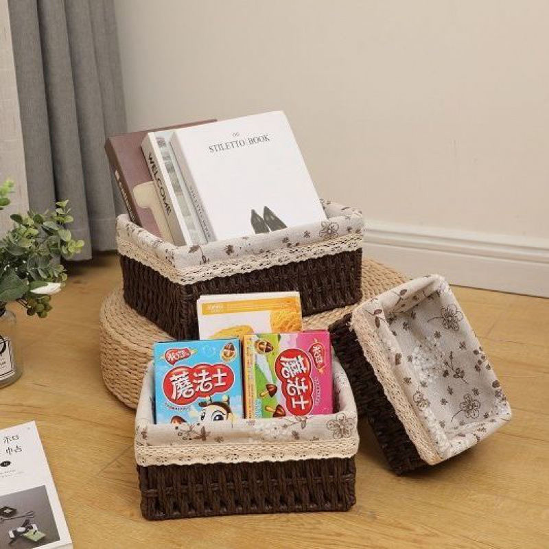 - Chất liệu: Khung đan bằng dây giấy thủ công tỉ mỉ và chắc chắn. Phía trên giỏ mây được lót bằng lớp vải hoa lanh vintage cao cấp, dễ dàng tháo rời.