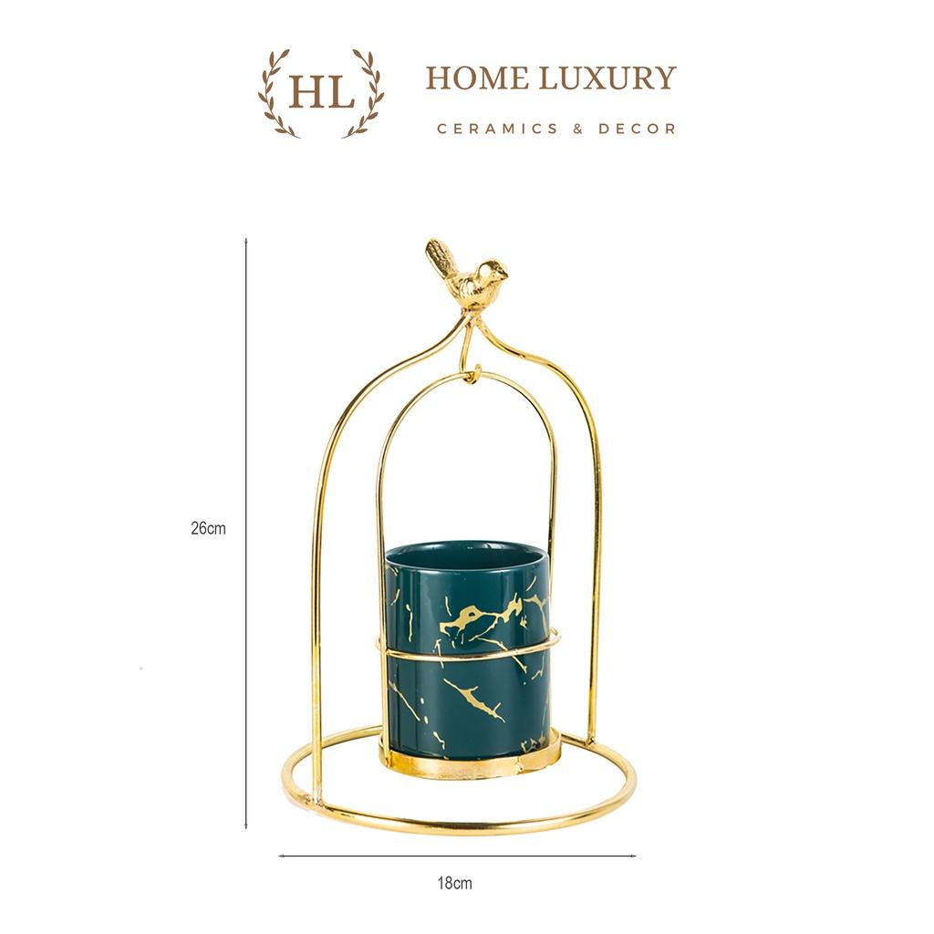 Lồng chim decor đựng dĩa , thìa đồ ăn trang trí , thiết kế độc đáo , hình lồng chim mạ vàng , cốc bằng sứ thiết kế theo phong cách bắc âu ~Thiết kế độc đáo và thanh lịch. ~ Có thể đượ...