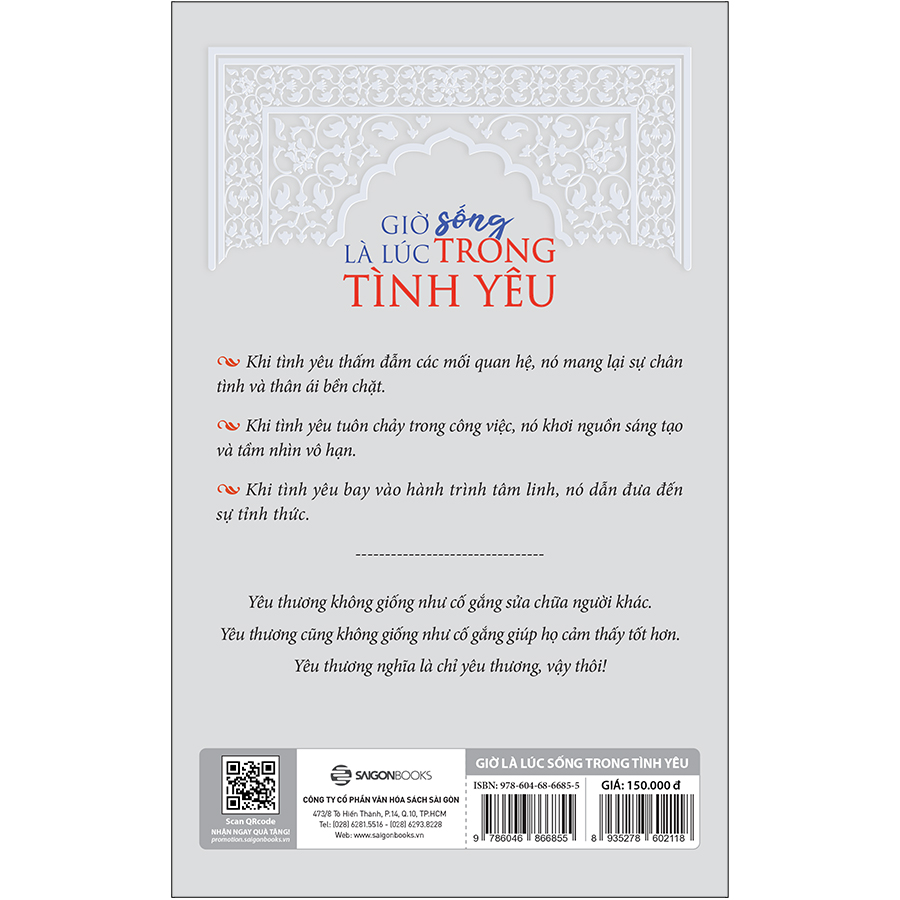 Từ ngữ trong quyển sách này không chỉ đơn thuần là từ ngữ – chúng là những cây cầu rung động, là những cánh cổng rung động được tạo thành để bạn đi qua. Nội dung lay động, tươi sáng sẽ kích hoạt sự tỉnh thức cao nhất của bạn, và cho phép bạn trải nghiệm những mặc khải và khai phá của riêng bạn. Giống như bất kỳ món quà nào, Giờ là lúc sống trong tình yêu không được sinh ra chỉ để ngắm nhìn và ngưỡng mộ, mà là để được mở ra, nghiền ngẫm và vận dụng vào cuộc sống.