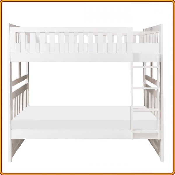 Giường Tầng 228 KÍCH THƯỚC: Rộng 146 x Dài 205 x Cao 180 (cm) NỆM TẦNG TRÊN: 100 x 195 x 9+ (cm) NỆM TẦNG DƯỚI: 140 x 195 x 9+ (cm) MÀU SẮC: Trắng