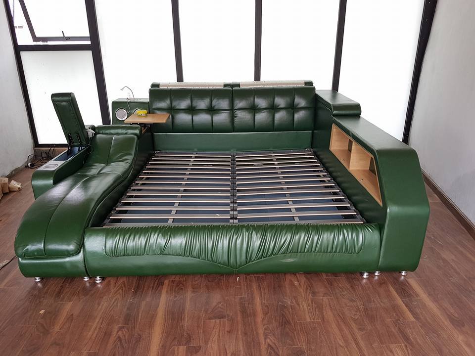 - Giường ngủ cao cấp có thành massage, thành hộc sách và hộc tiện ích, lọt lòng nệm 1m6 x 2m hoặc 1m8 x 2m. phủ bì 2m25 x 2m65