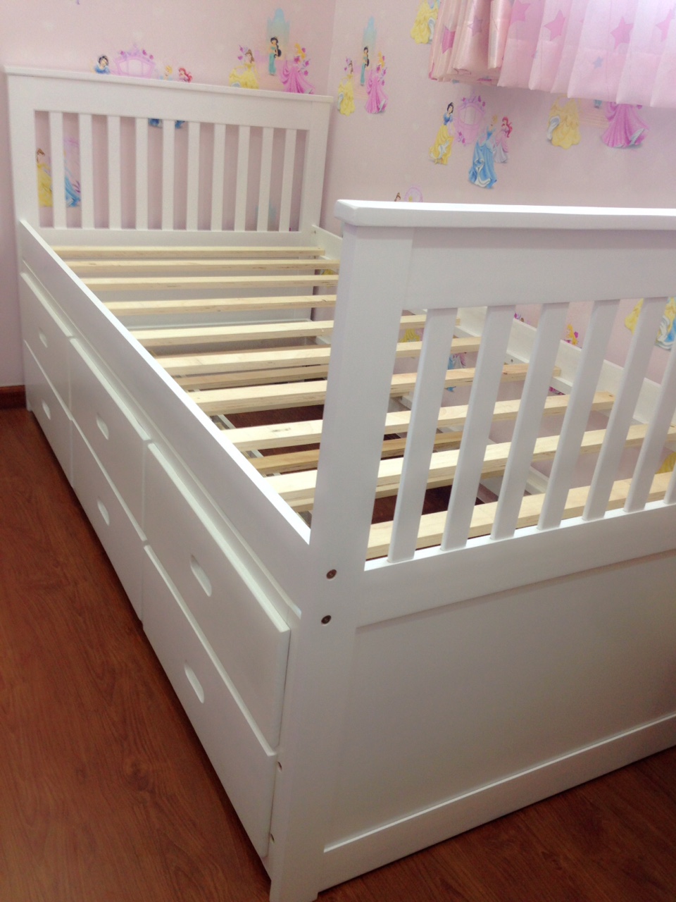 + Chất liệu: Khung giường gỗ thông Newzealand, phân tầng, Vách, đáy hộc gỗ công nghiệp, thang giường MDF chịu lực + Kích thước: kích thước phủ bì, tầng trên ưới 1mx2m Giường tầng hộp