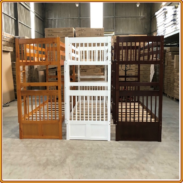 + Chất liệu: Khung giường gỗ thông Newzealand, phân tầng, Vách, đáy hộc gỗ công nghiệp, thang giường MDF chịu lực + Kích thước: kích thước phủ bì, tầng trên ưới 1mx2m Giường tầng hộp